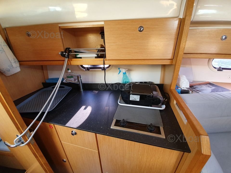 Rendimiento y Motor: Equipado con un motor diésel de 14 CV, este velero alcanza una velocidad de crucero de unos 6 nudos y una velocidad máxima de 8 nudos. La quilla de bulbo asegura una estabilidad y maniobrabilidad óptimas, incluso en vientos fuertes.