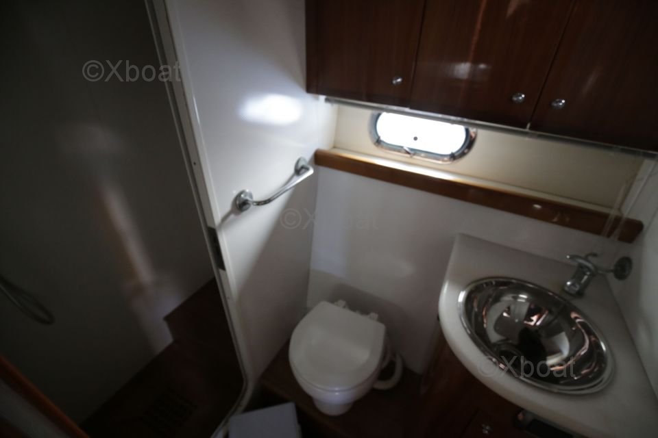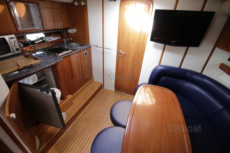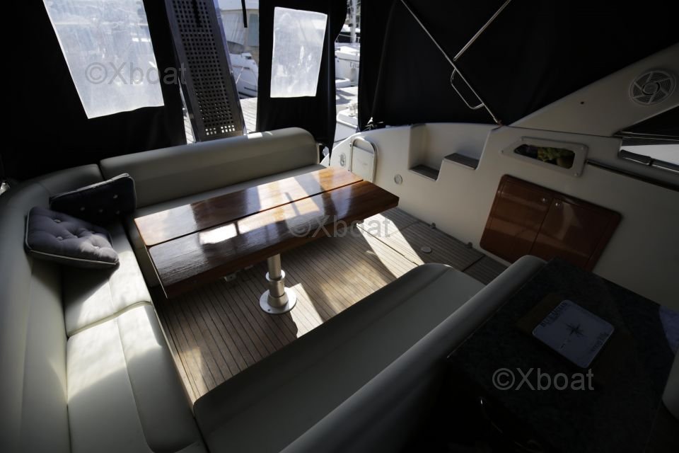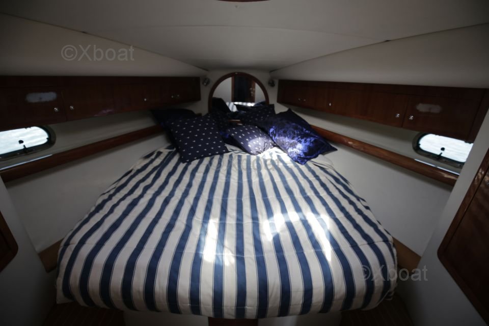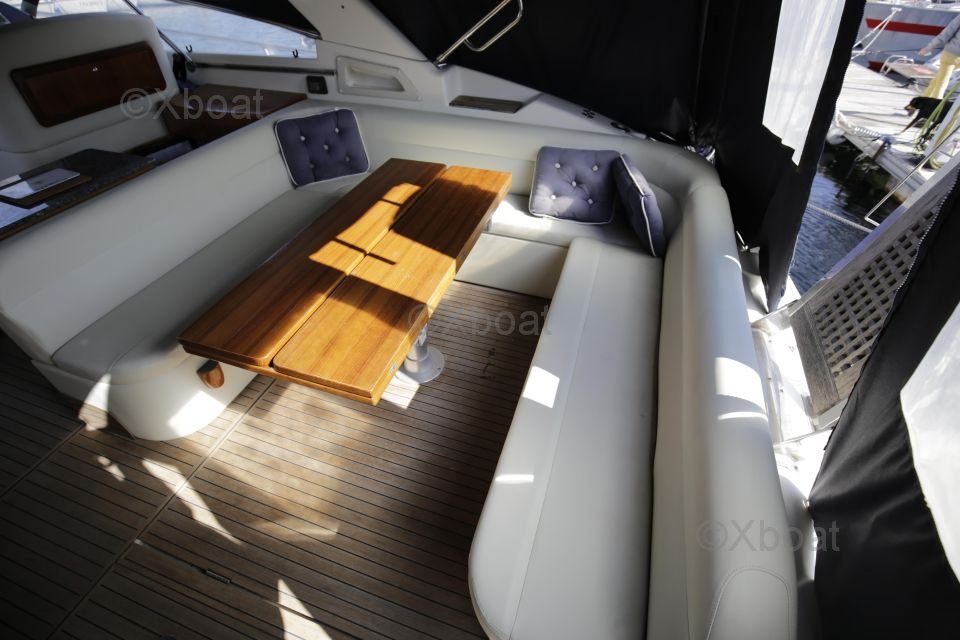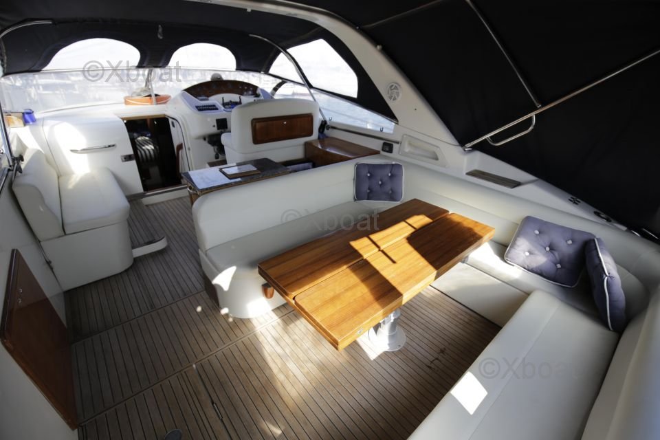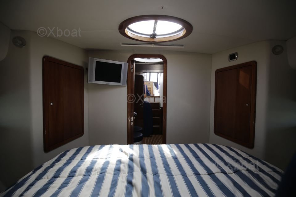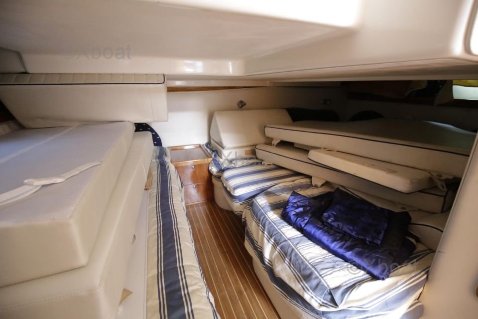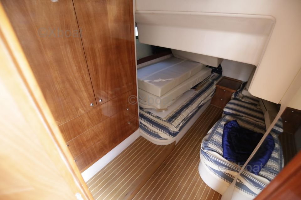 Distribución interior: El barco cuenta con dos cabinas dobles, proporcionando espacio de dormir cómodo para cuatro personas. La cabina principal está equipada con una cama doble, mientras que la segunda cabina puede configurarse con camas individuales o una cama doble. La sala de estar es espaciosa y luminosa, con una gran mesa de cartas y asientos cómodos.