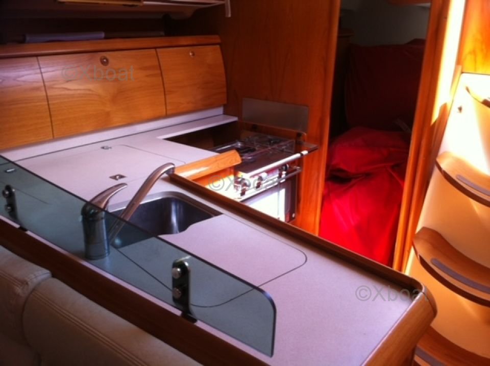 Confort a bordo: A pesar de su diseño orientado al rendimiento, el Sun Fast 40 ofrece un buen nivel de confort con un interior bien equipado. Cuenta con 6 literas distribuidas en 3 cabinas, una cocina equipada y un baño.