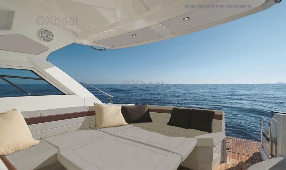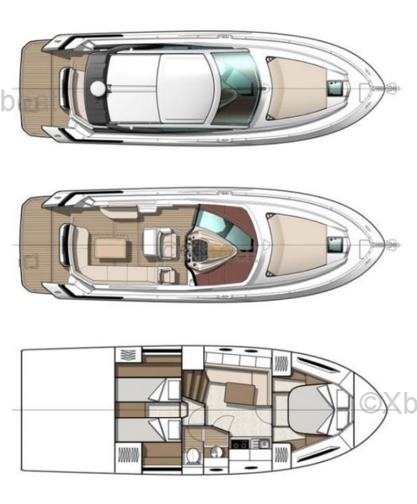 Distribución interior: El barco cuenta con dos cabinas dobles, un baño con ducha y una cocina totalmente equipada. La sala de estar es espaciosa y luminosa, con grandes ventanas que ofrecen una vista despejada del exterior. La cubierta está dispuesta para la comodidad con asientos y una mesa de comedor.