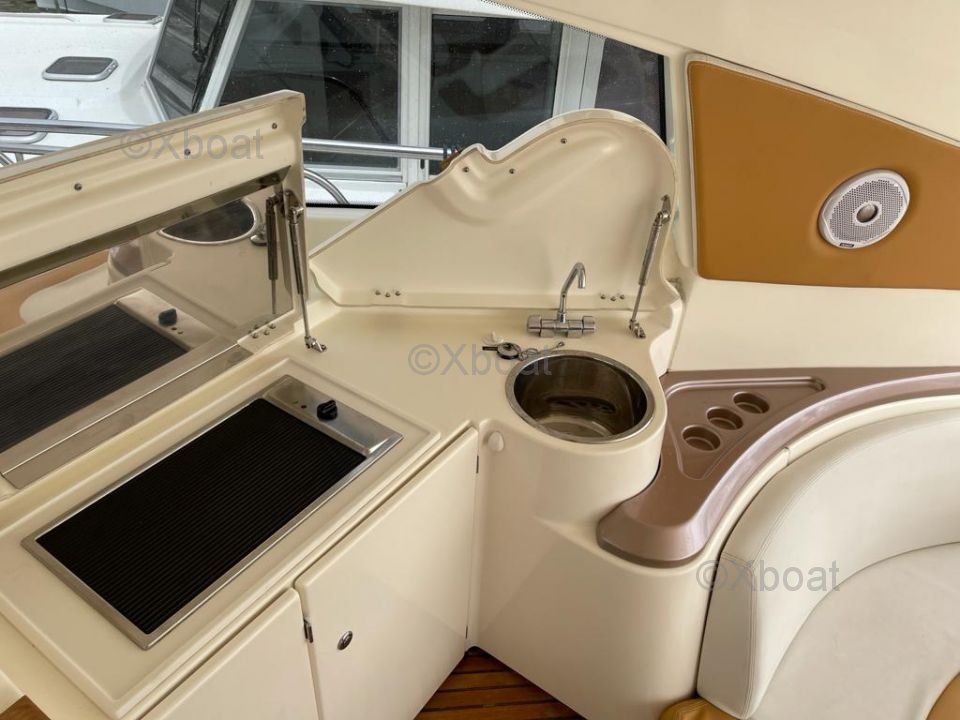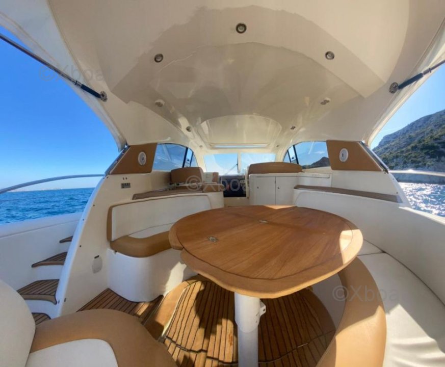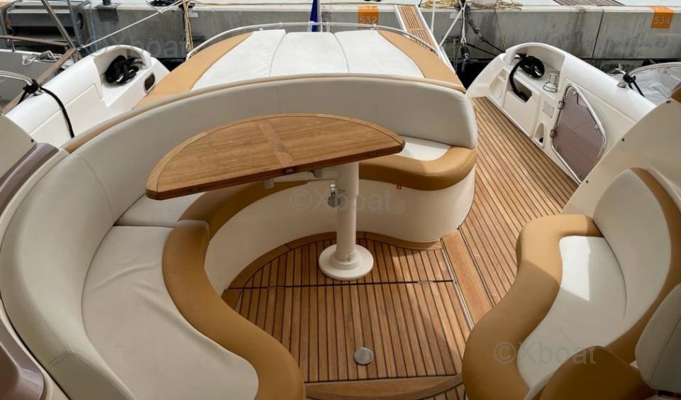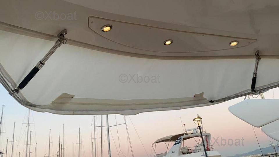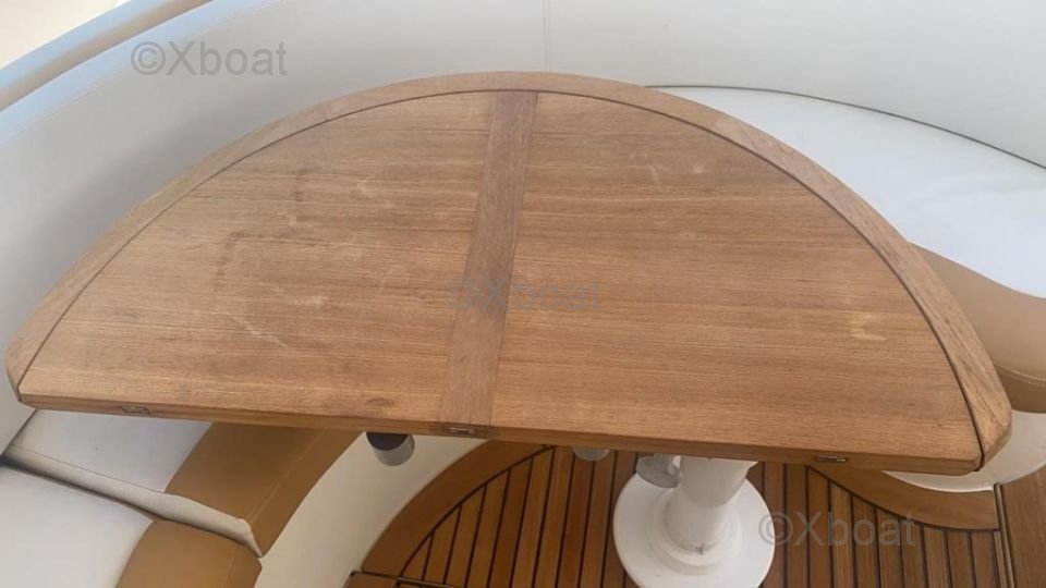 La cubierta superior, o flybridge, es un punto destacado de este modelo. Ofrece espacio adicional al aire libre, ideal para días de navegación o noches bajo las estrellas. El flybridge está equipado con asientos cómodos, una mesa de comedor y una estación de timón adicional.