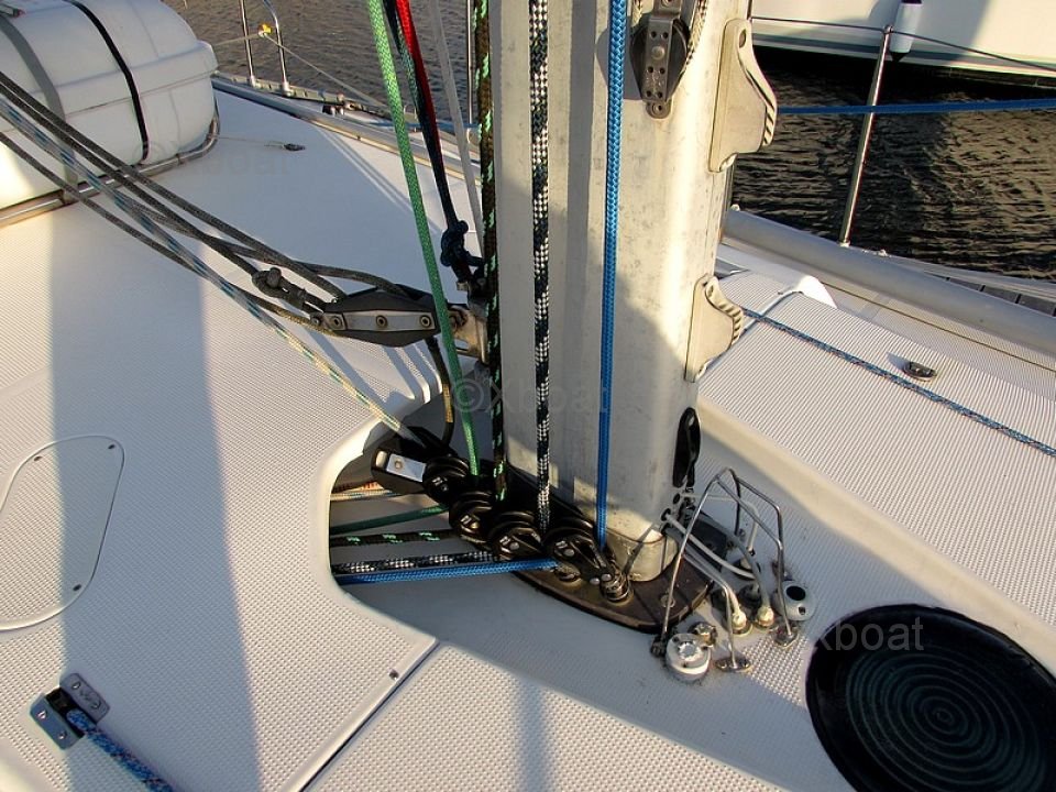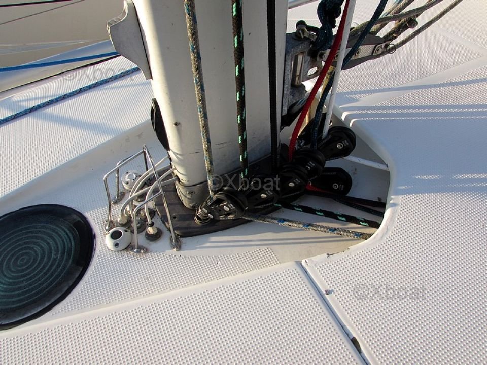 Construcción: El casco del Beneteau First 41S5 está construido de poliéster reforzado con fibra de vidrio, proporcionando gran robustez y una larga vida útil. La cubierta también está hecha de poliéster, con refuerzos estratégicos para una mejor resistencia.