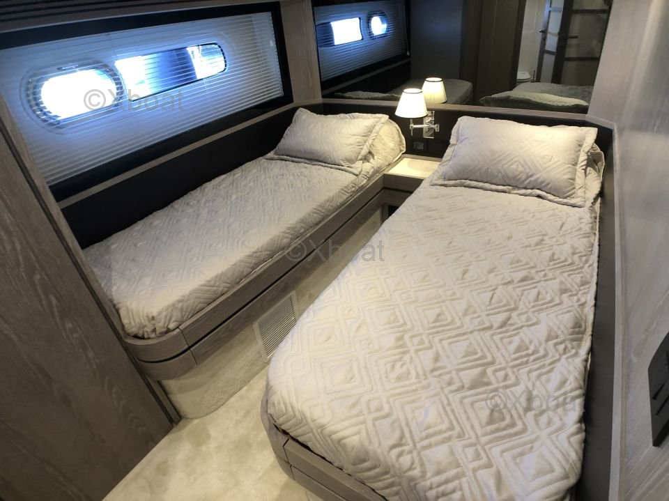 Espacios interiores: El yate cuenta con cuatro cabinas, incluyendo una suite del propietario en la proa, dos cabinas dobles y una cabina individual para la tripulación. Los interiores están acabados con materiales de alta calidad, ofreciendo un confort y una estética refinados.