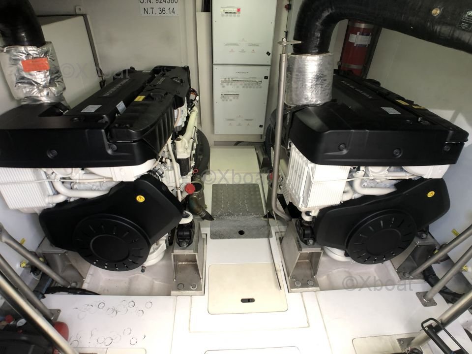 Motor: El Magellano 66 está equipado con dos motores diésel MAN V8-1000, cada uno desarrollando 736 caballos de fuerza, ofreciendo una velocidad de crucero de 22 nudos y una velocidad máxima de 26 nudos.