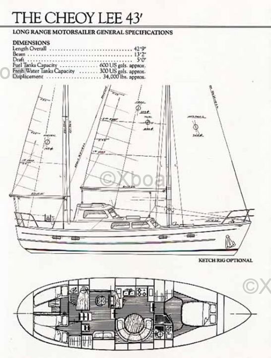 El Cheoy Lee 43 MS está equipado con un motor auxiliar fiable, generalmente un diésel, que proporciona suficiente potencia para las maniobras y los períodos sin viento. El diseño interior es espacioso, con cabinas cómodas y amplios espacios de almacenamiento, ideales para cruceros largos.