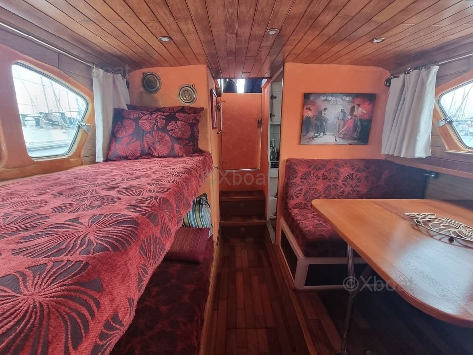 El interior ha sido completamente renovado para ofrecer la máxima comodidad. Me he asegurado de renovar el aislamiento, los maderajes, el suelo, el techo, así como la fontanería y la electricidad (220 V y 12 V). La tapicería también ha sido renovada, y se ha instalado una ventana de aluminio para mayor luminosidad y vistas al exterior.
