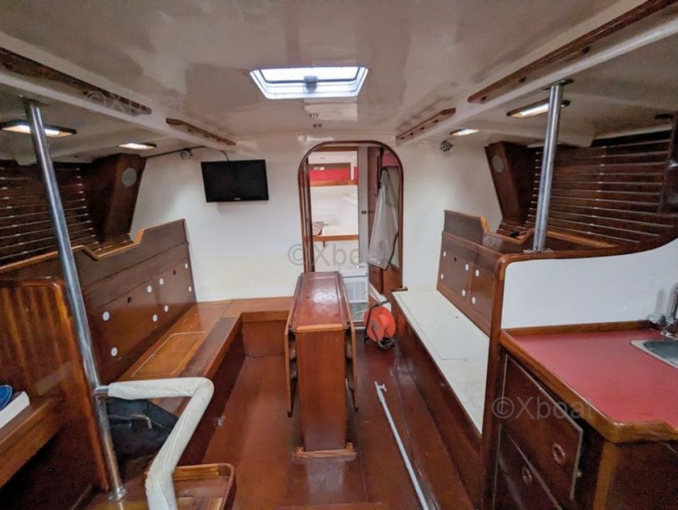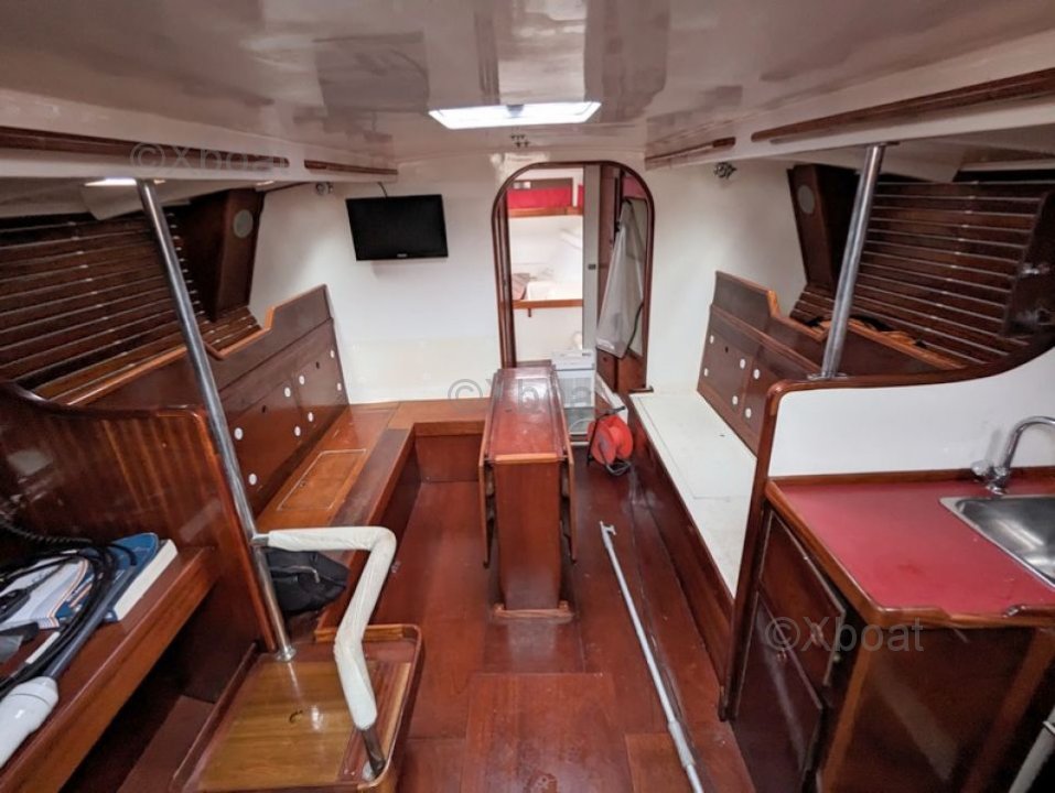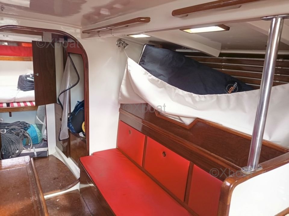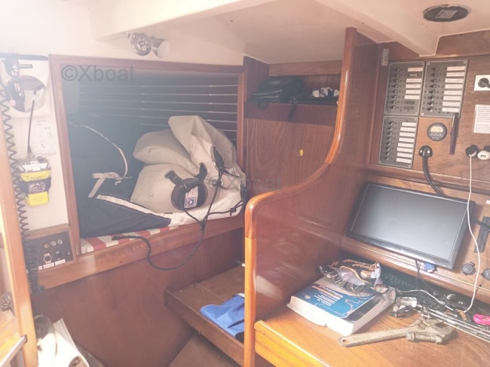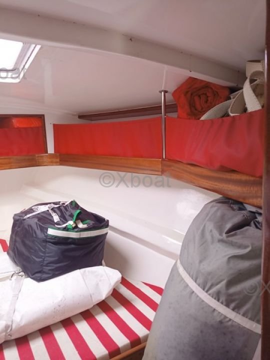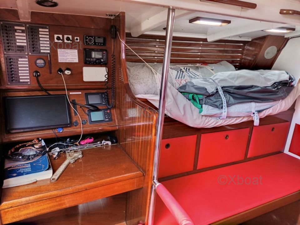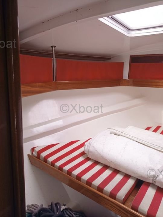 - Detalles de las velas : VOILES : - grand-voile semi lattée en Dacron (2015) - lazzy bag - génois sur enrouleur (2015) - enrouleur de génois HARKEN - réglage 3D du génois - chaussette de génois - second étai largable - trinquette sur mousquetons - 2 spinnaker (un léger, un lourd) - 2 tangons carbone - 2 sacs de pont - code 5 spinnaker asymétrique - gréement courant (2015) - 6 drisses, 9 écoutes (Spectra et Vectron) - petite capote de descente - GREEMENT : - mât traversant SOROMAP (remplacé en 2015) - gréement dormant remplacé en 2015 (tout les câbles) - poulies HARKEN - Taquets, spinlock - 10 chandeliers inox (remplacé en 2015) WINCHS : - 6 winchs ANDERSEN - 2 X 40 ST two speed - 4 x 52 ST two speed