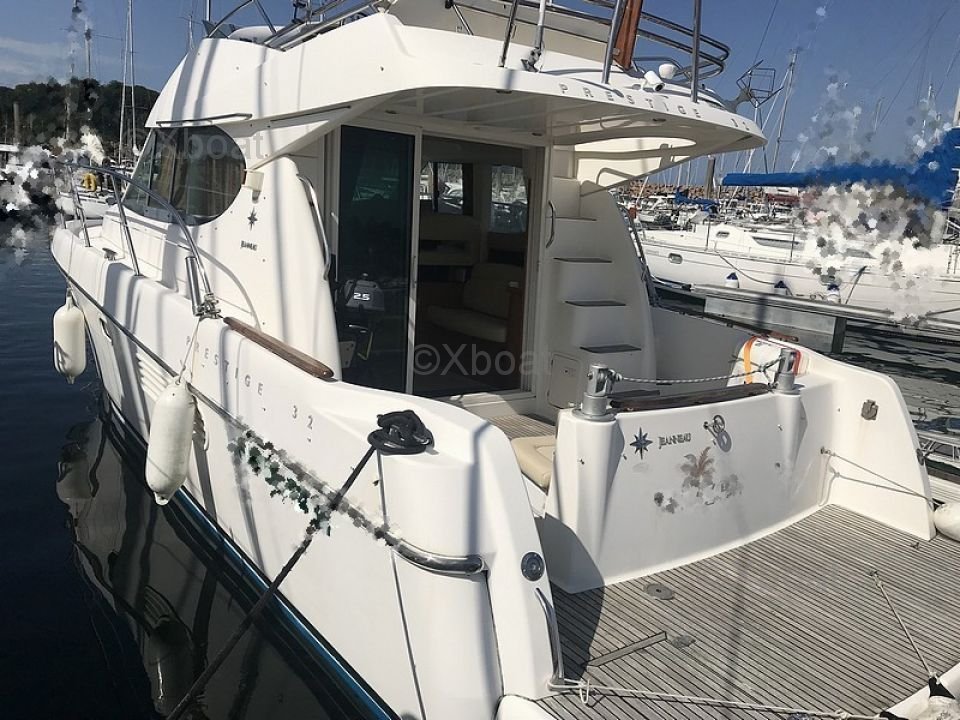 Rendimiento: Gracias a su casco de fibra de vidrio y su diseño aerodinámico, el Prestige 32 ofrece una excelente estabilidad y buena navegabilidad. Es capaz de alcanzar velocidades de crucero cómodas mientras asegura un consumo de combustible razonable.