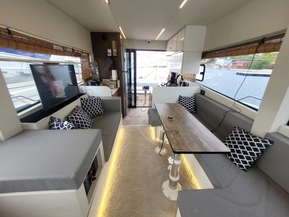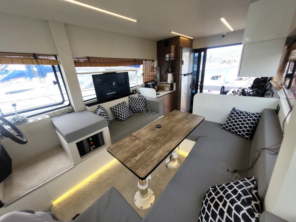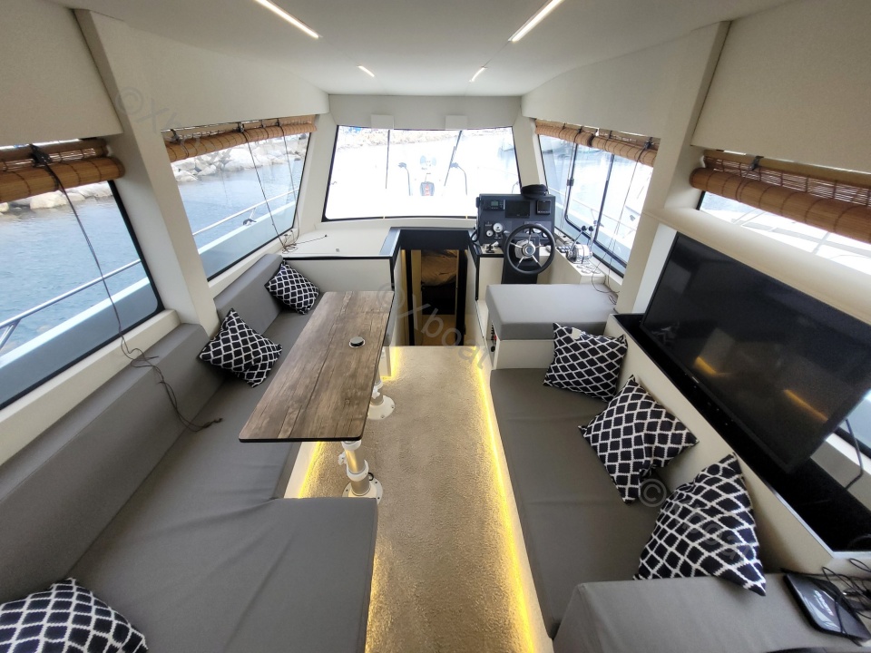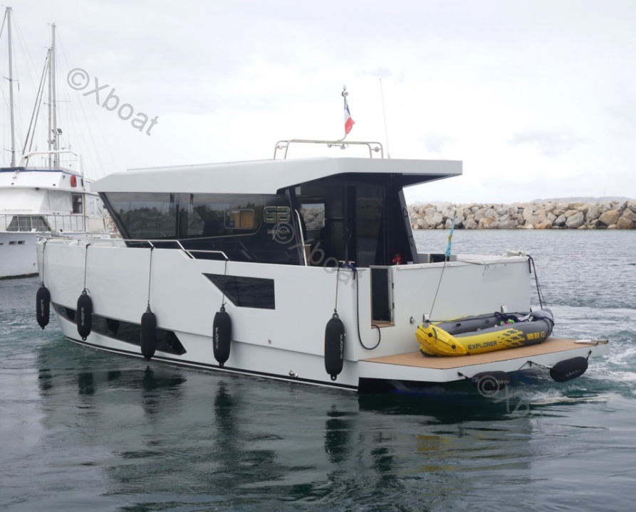 Dotado de un impresionante casco de aluminio, este trawler futurista está diseñado para un uso híbrido. Equipado con un grupo motopropulsor económico y fiable, perfecto para cubrir largas distancias en crucero, el Carbo Yacht 42 también será ideal para salidas de un día con su cóctel espacioso, su inmensa plataforma de baño y su interior inundado de luz.