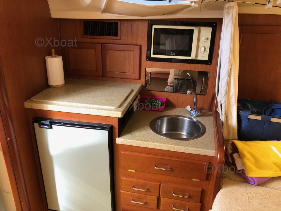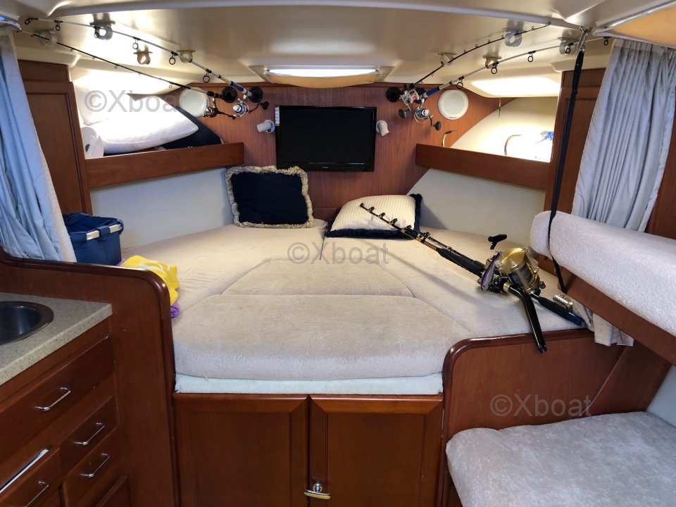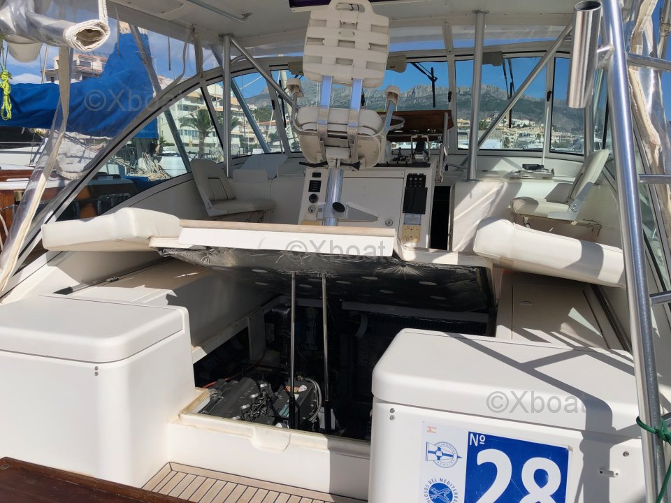 El Luhrs 32 Open está equipado con un potente motor, a menudo un diésel, que ofrece un buen alcance y un rendimiento confiable. El diseño del casco, con sus líneas limpias, garantiza una buena estabilidad y una navegación suave, incluso en mares agitados.
