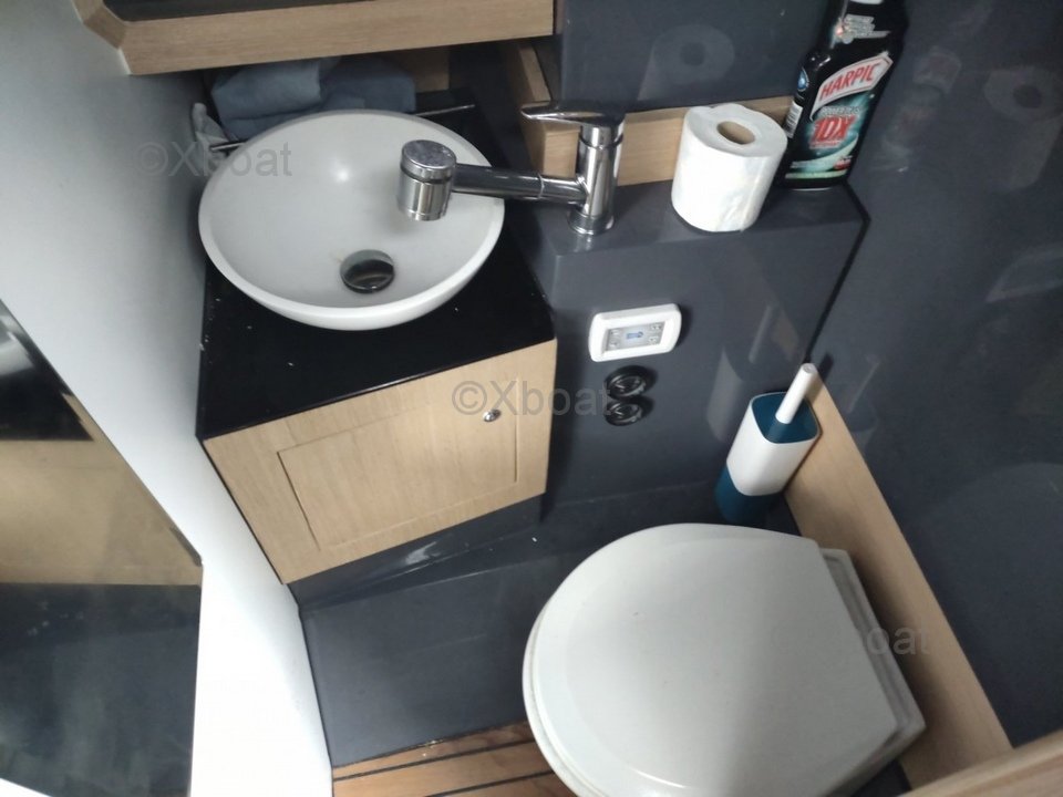 En su interior, el barco ofrece un espacio de vida espacioso y bien equipado. La sala de estar está equipada con asientos cómodos y una mesa de comedor, mientras que la cocina es moderna y funcional. Los camarotes están decorados con elegancia y ofrecen suficiente espacio de almacenamiento.