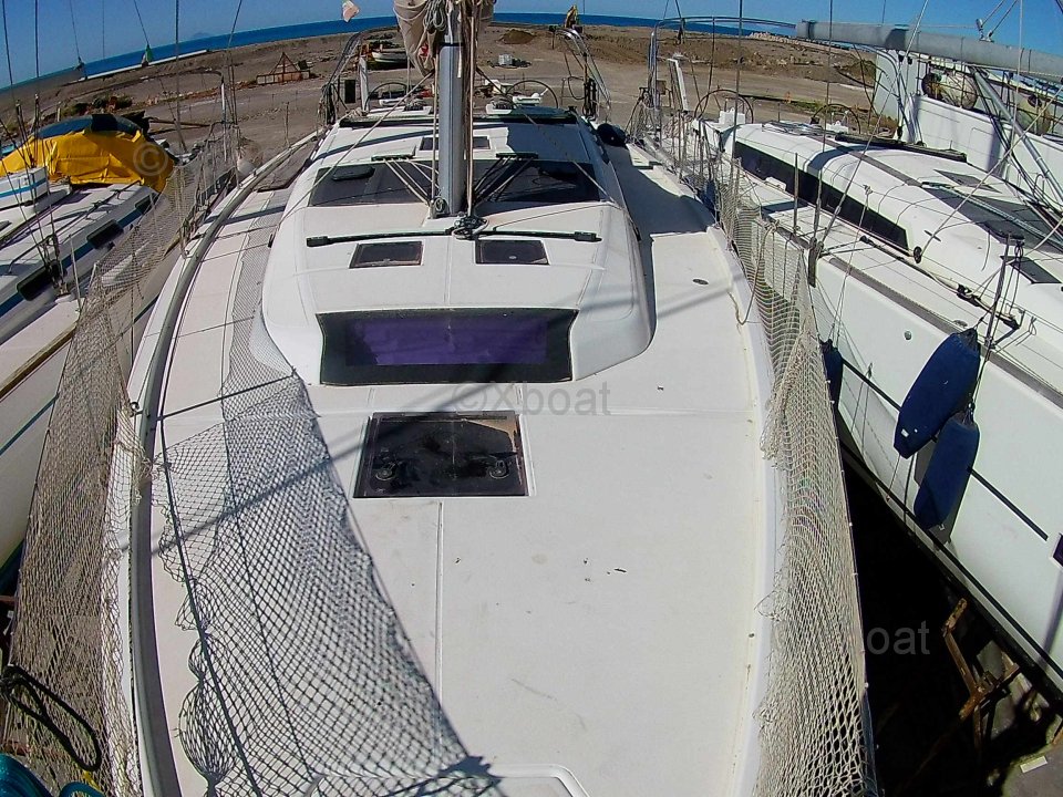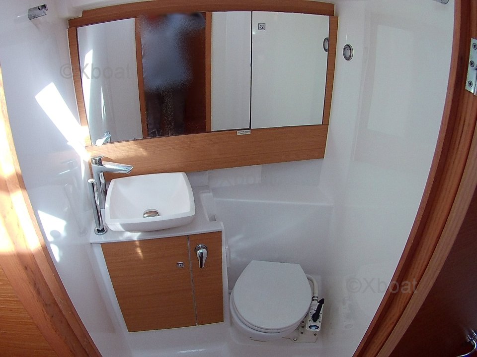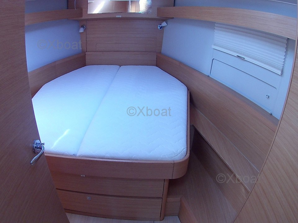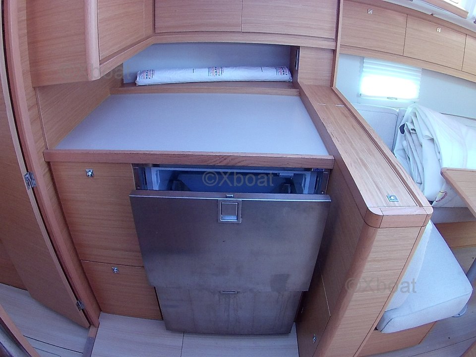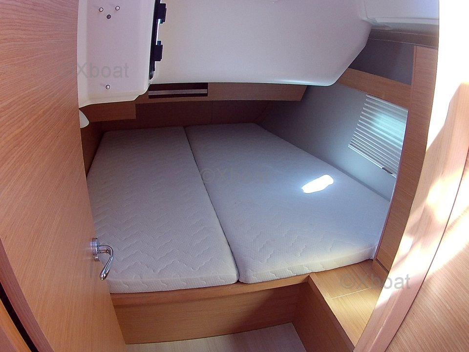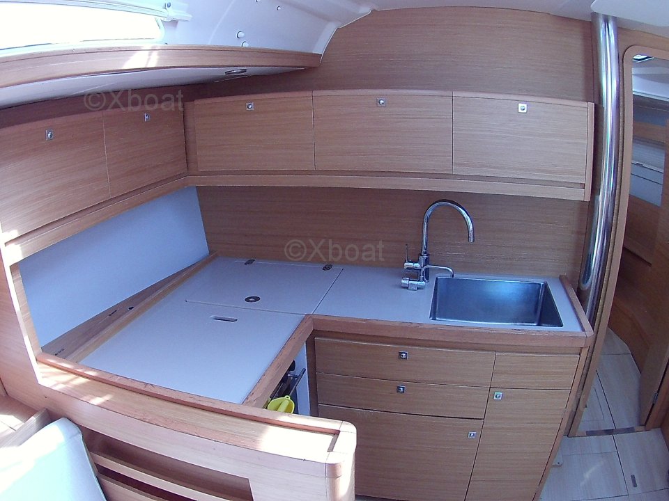 El Dufour 430 ofrece un interior espacioso y bien diseñado con acabados de alta calidad. Cuenta con tres camarotes dobles, cada uno proporcionando un espacio de vida cómodo. La cocina está bien equipada con un doble fregadero, un refrigerador y una estufa de gas. El salón es luminoso y ofrece una vista impresionante del exterior gracias a sus grandes ventanas.
