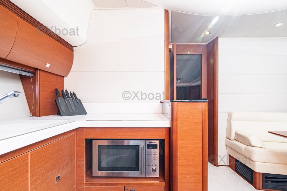 Potencia: El Prestige 440 S generalmente está equipado con dos motores diésel, proporcionando una potencia total de 710 caballos de fuerza. Estos motores permiten una velocidad de crucero cómoda y una excelente maniobrabilidad.
