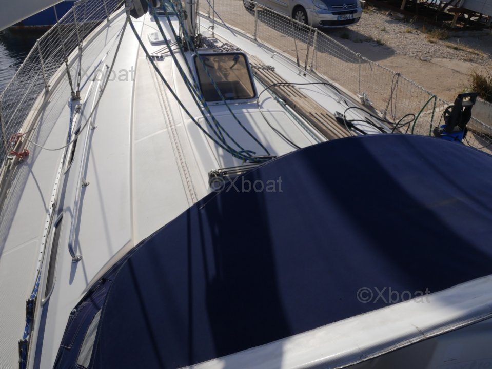 El Bavaria 44 está construido con materiales de alta calidad, asegurando durabilidad y seguridad. El casco de poliéster reforzado con fibra de vidrio proporciona buena resistencia a los impactos y excelente estabilidad en el mar. El equipo de seguridad, como balsas salvavidas y extintores, están fácilmente accesibles y cumplen con las normas actuales.