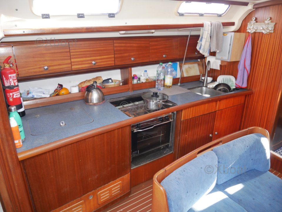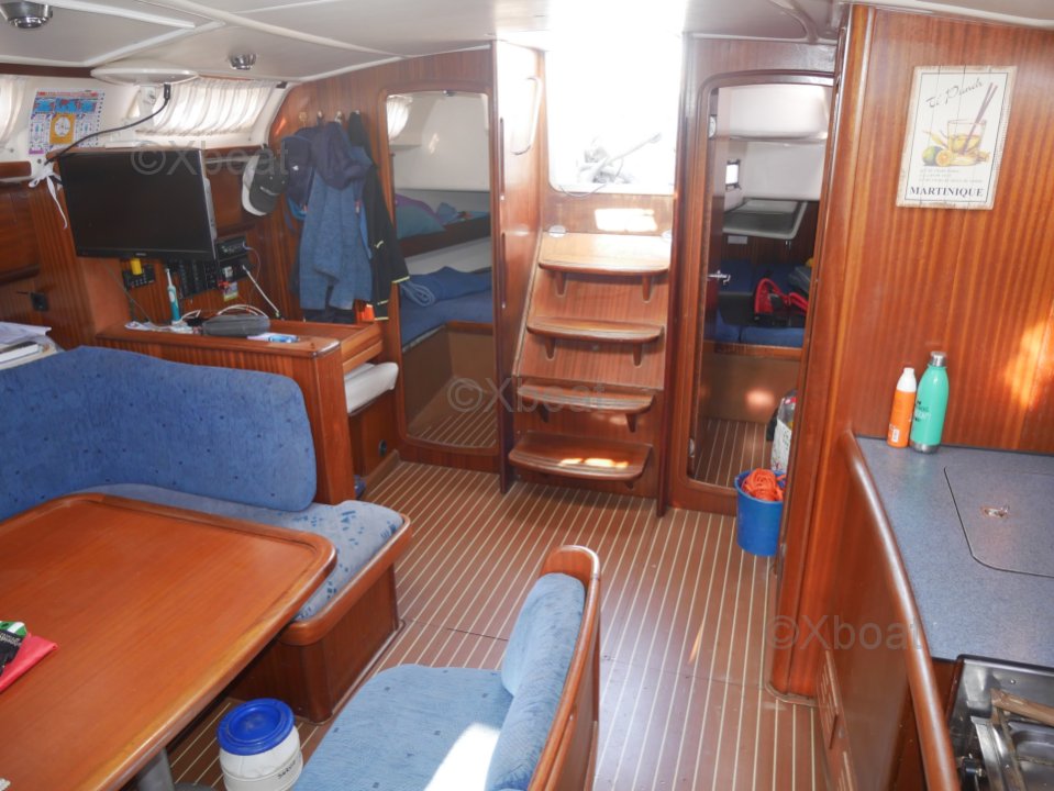 En el interior, el Bavaria 44 ofrece un área de vida espaciosa y cómoda. La cabina principal cuenta con tres camarotes dobles y dos baños, proporcionando suficiente espacio para cruceros prolongados. La cocina está bien equipada y el salón es luminoso, gracias a numerosas escotillas y grandes ventanas.
