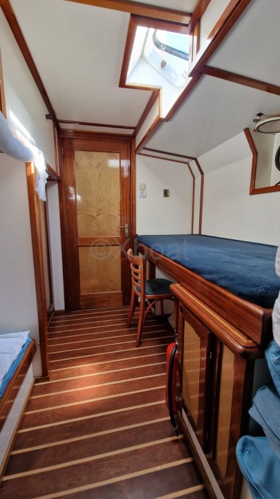 Construido en Alemania en 1909 - 1910, originalmente para uso de carga, fue transformado por un astillero holandés en 1950 tras una toma de guerra, añadiendo dos mástiles a su configuración inicial de goleta. Este barco sirvió como transbordador comercial para el transporte de pasajeros en las aguas interiores holandesas. El actual propietario, apasionado y meticuloso, está terminando con cuidado el refit.