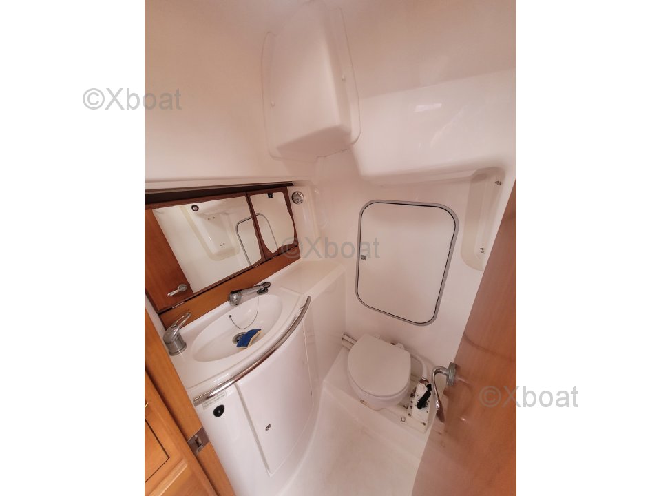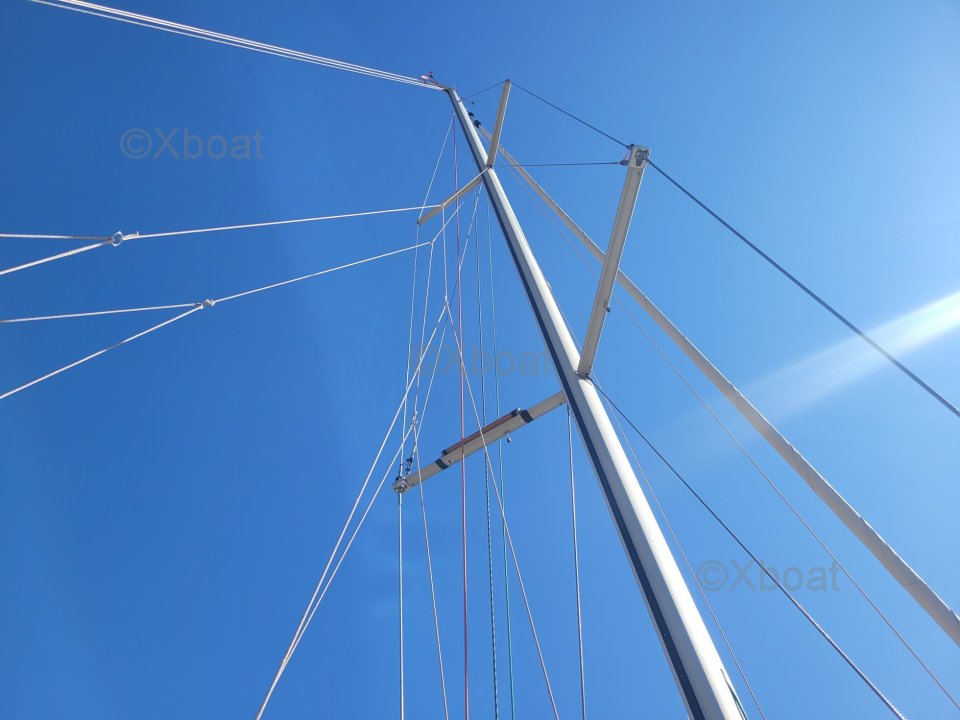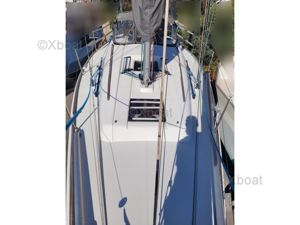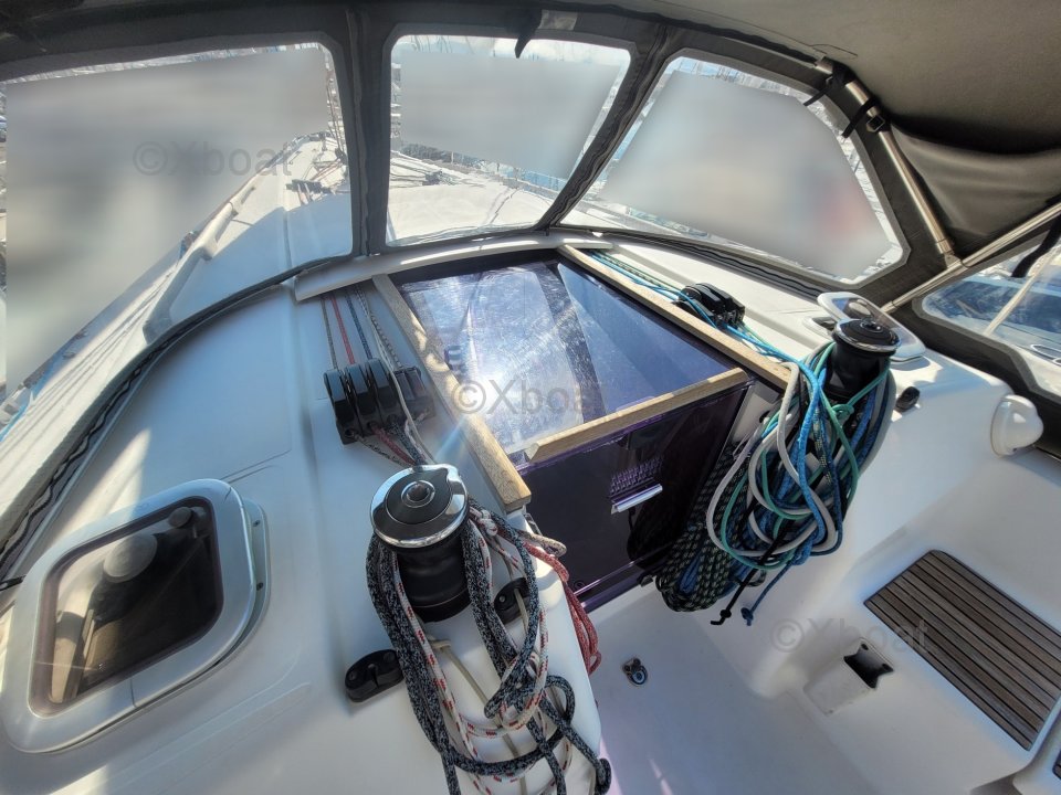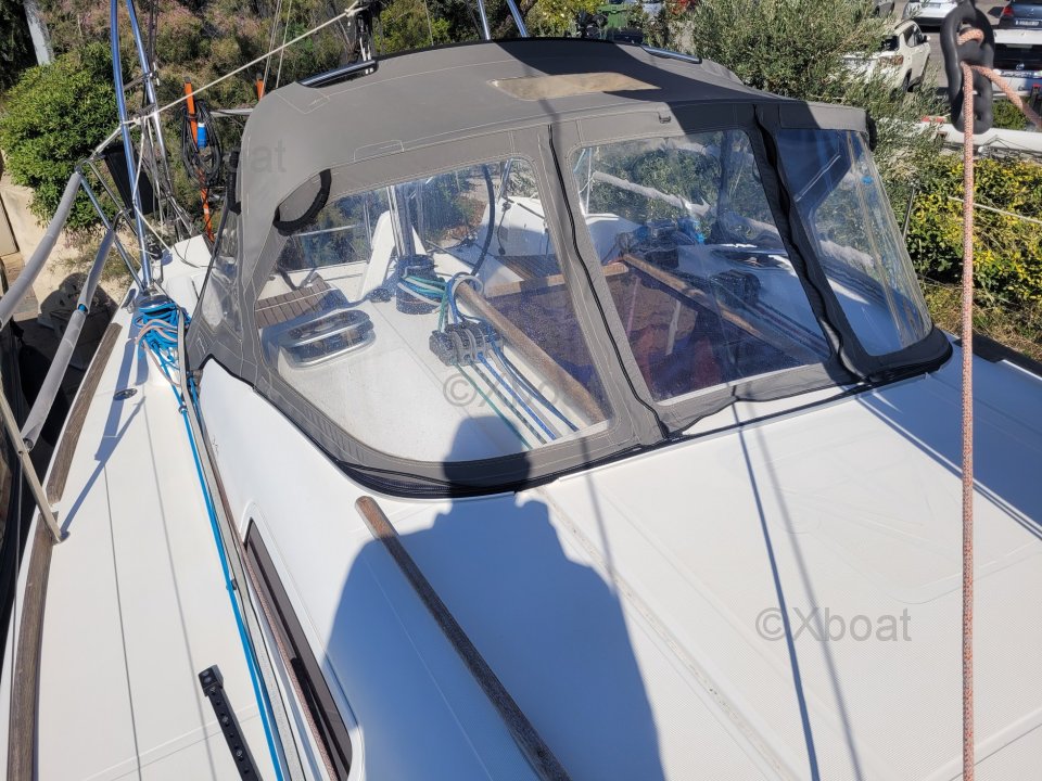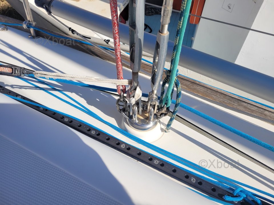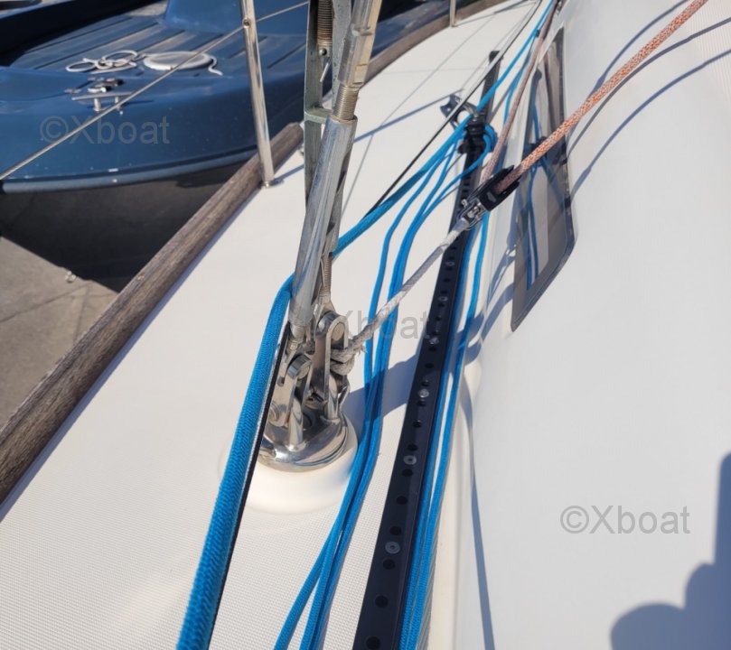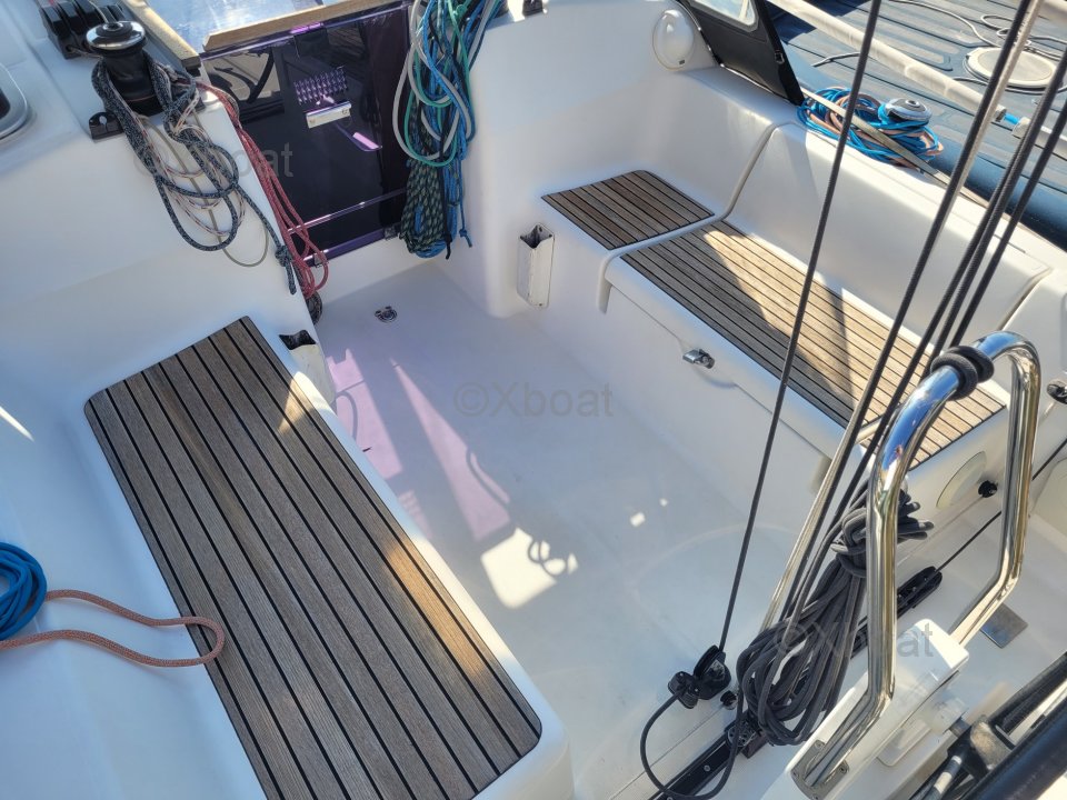 Diseño y construcción: El Dufour 34 Performance está construido con un casco de poliéster reforzado con fibra de vidrio, ofreciendo una excelente resistencia y una larga vida útil. La cubierta también es de poliéster reforzado, asegurando robustez y facilidad de mantenimiento.