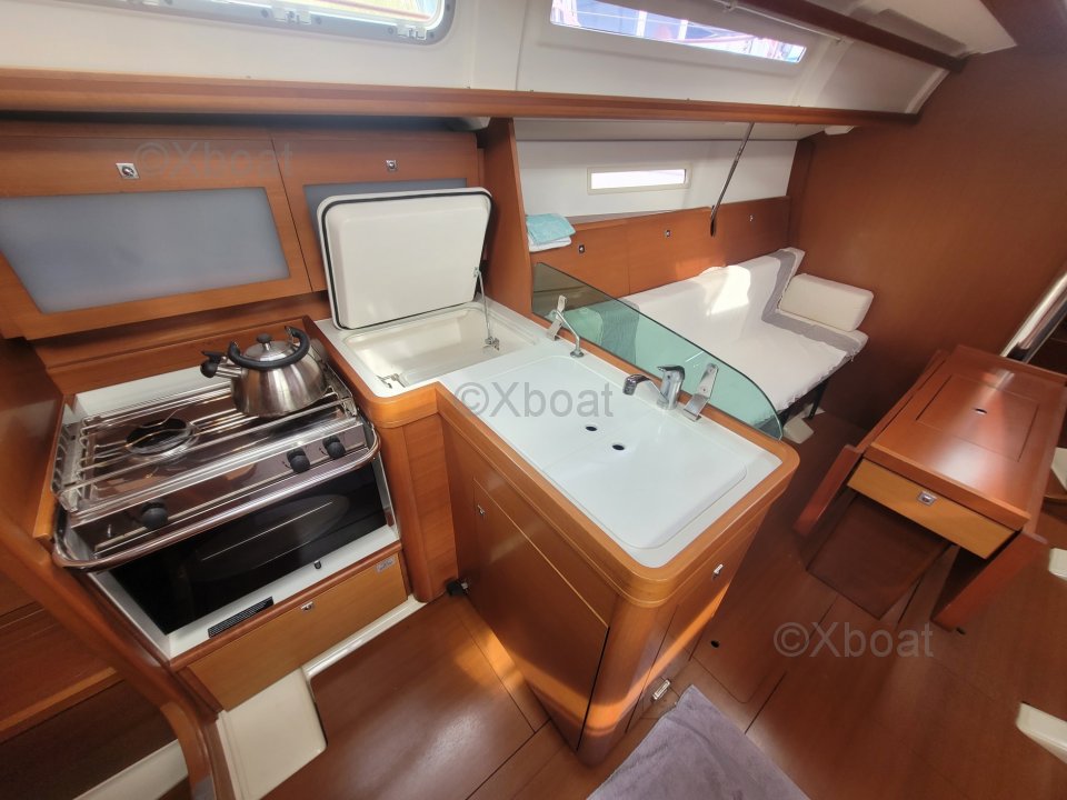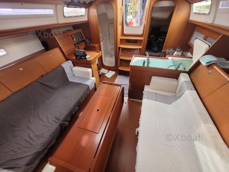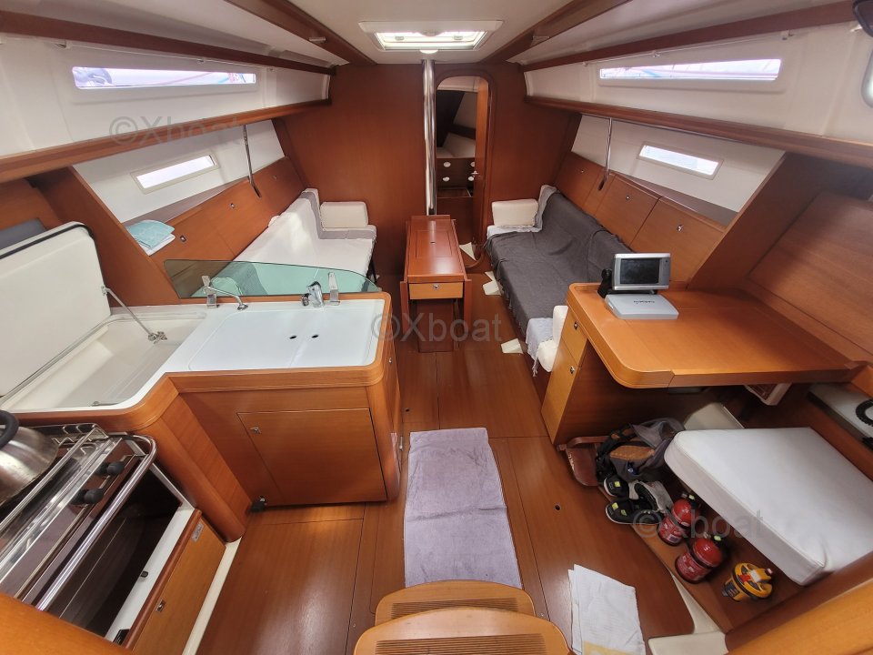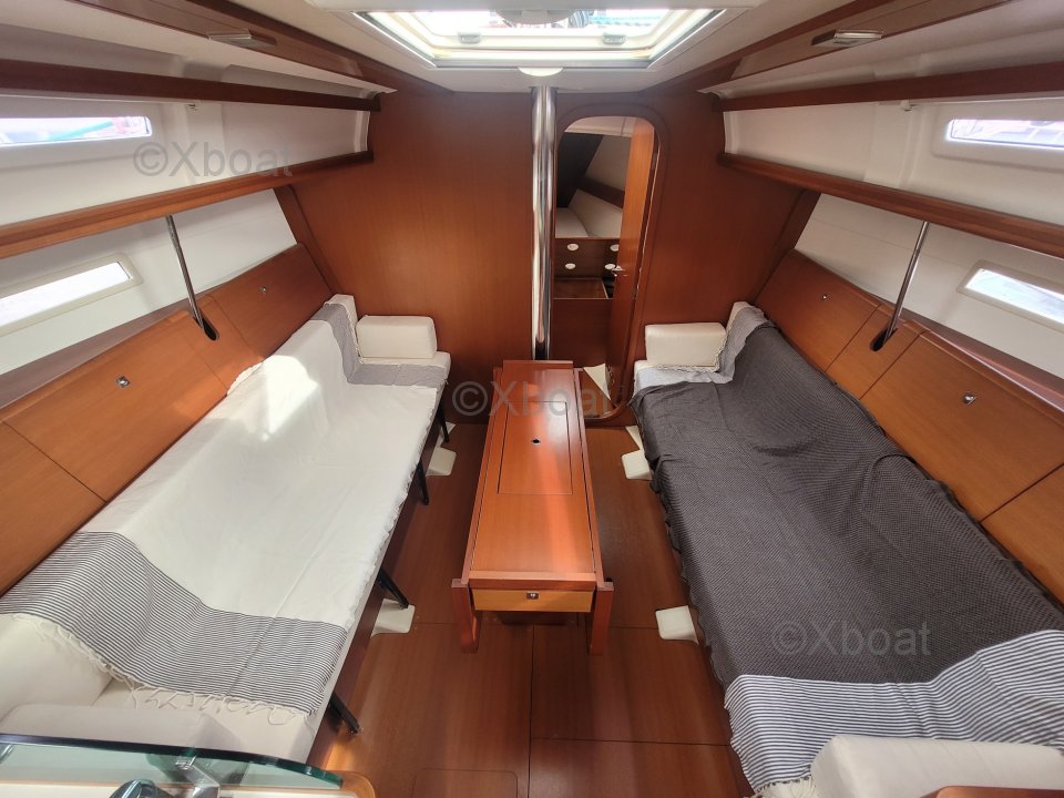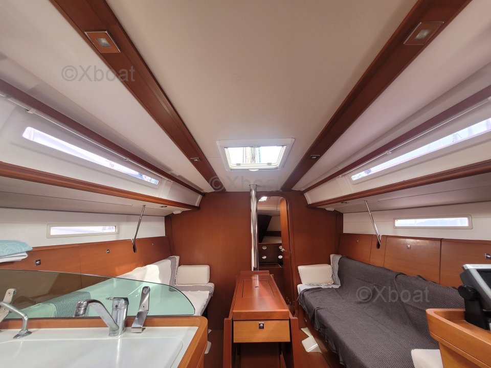 Confort y habitabilidad: En el interior, el Dufour 34 Performance ofrece un espacio de vida cómodo con una cabina principal espaciosa, una cocina bien equipada y alojamiento para hasta 6 personas. Los acabados interiores son meticulosos, con materiales de calidad y un diseño moderno.