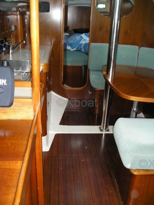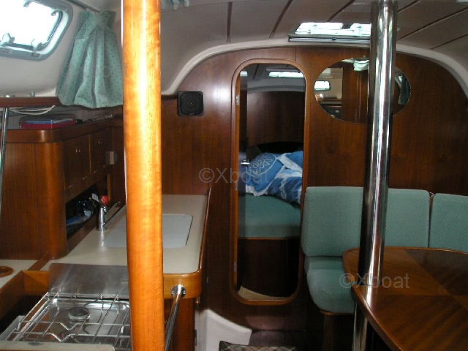 El interior del Oceanis 351 está diseñado para ofrecer el máximo confort con espacios de vida bien equipados. La cabina principal cuenta con dos literas dobles, y también hay una cabina de proa con literas individuales. La cocina y el baño son funcionales y bien equipados.