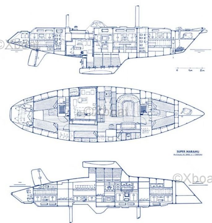 El Super Maramu 2000 está diseñado para ofrecer una navegación segura y placentera, con acabados de alta calidad y equipo moderno. Su casco robusto y diseño probado lo convierten en un velero confiable para largas travesías.
