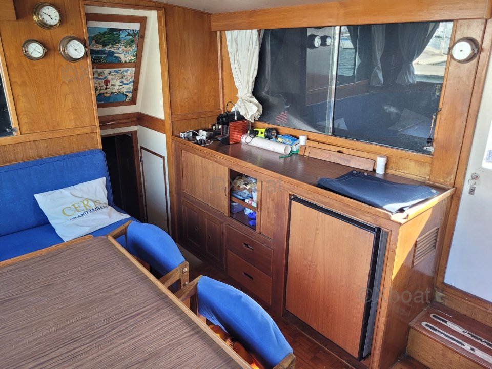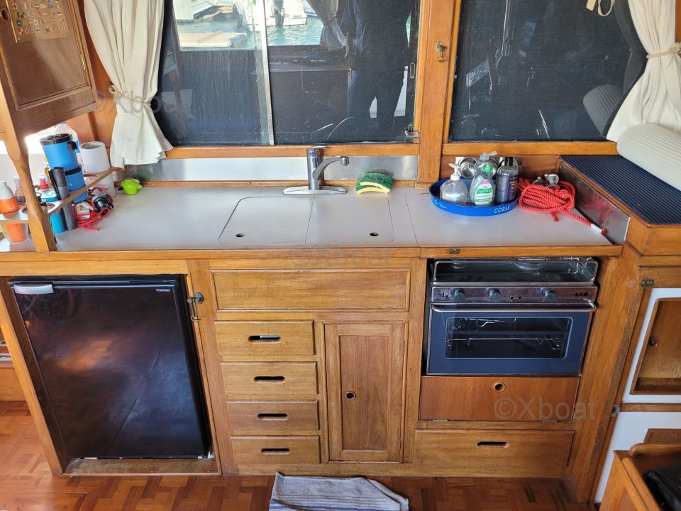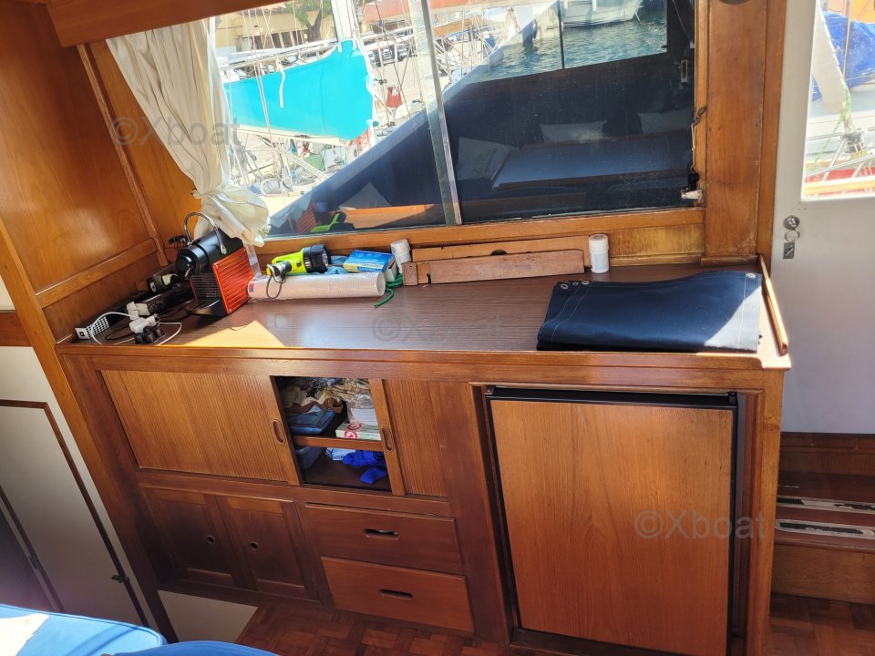 Mi Grand Banks 42 Classic se distingue por su configuración interior original. La cocina alargada da una impresionante sensación de espacio interior para un barco de 42 pies. Este diseño único optimiza el espacio y lo hace especialmente cómodo para la vida a bordo.