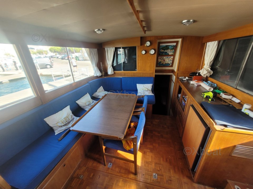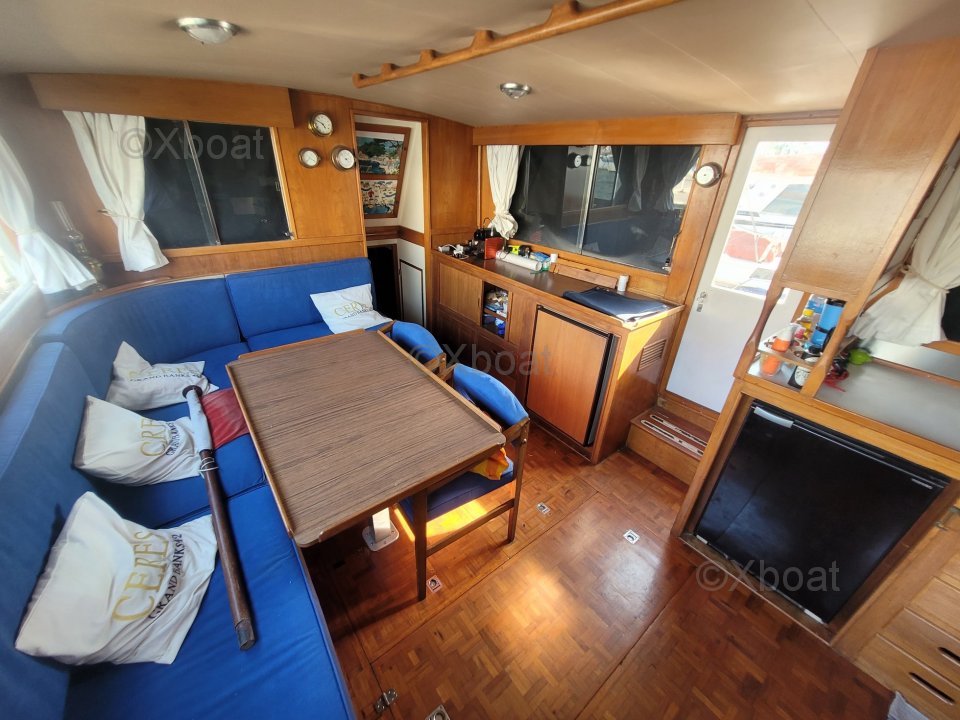 Los motores John Deere de este barco de segunda mano están perfectamente mantenidos, asegurando una fiabilidad óptima. Las piezas de repuesto son fácilmente accesibles, lo que facilita el mantenimiento. Además, este modelo tiene un aumento de potencia en comparación con los Ford Lehman, ofreciendo un rendimiento superior.