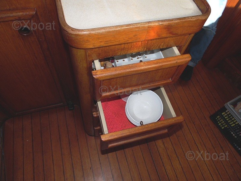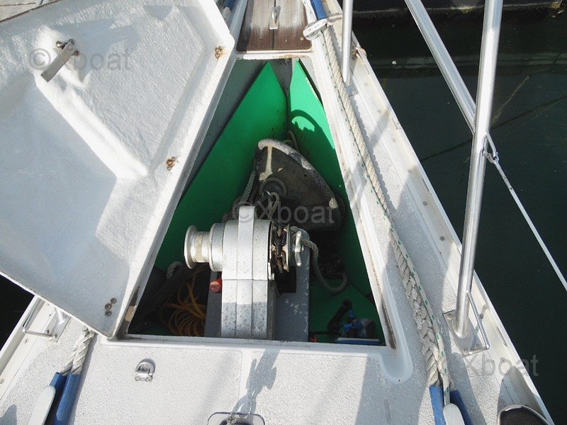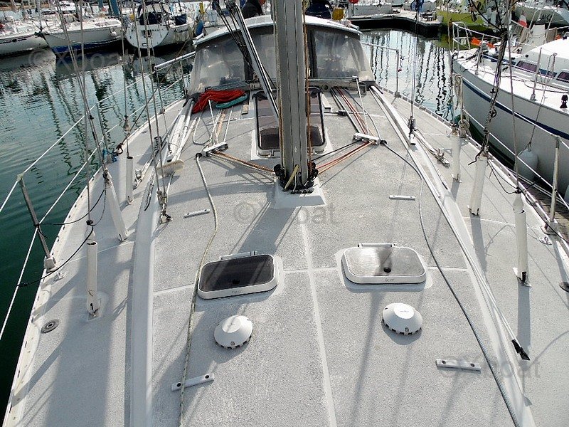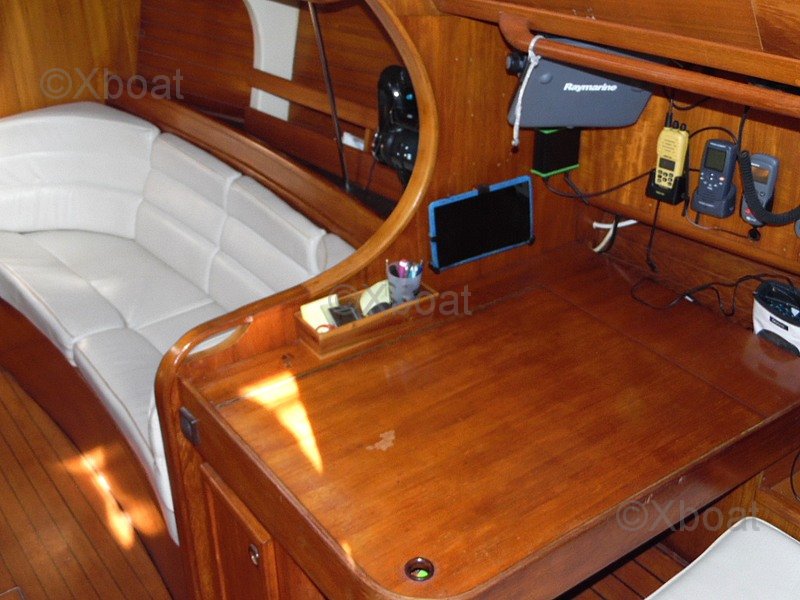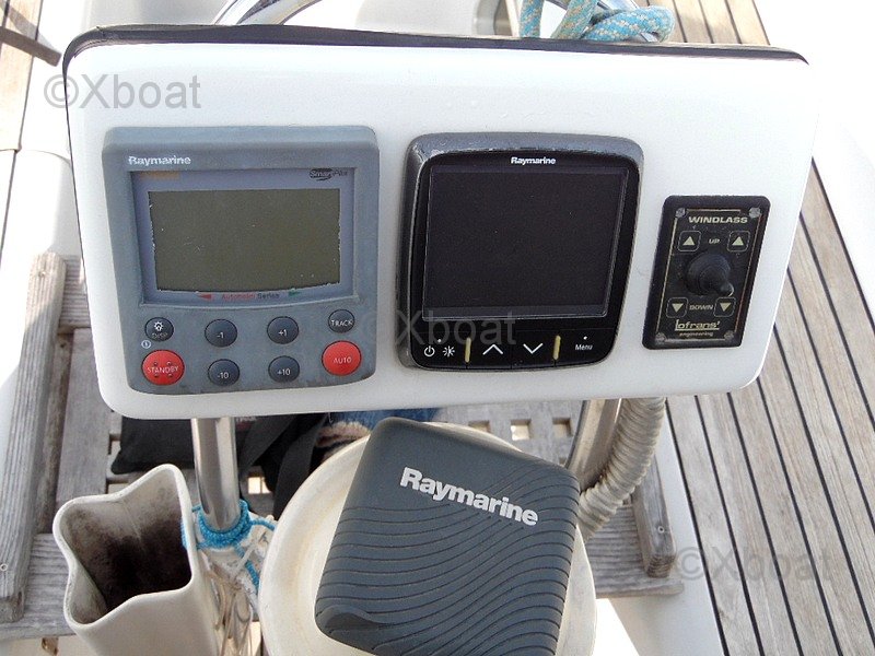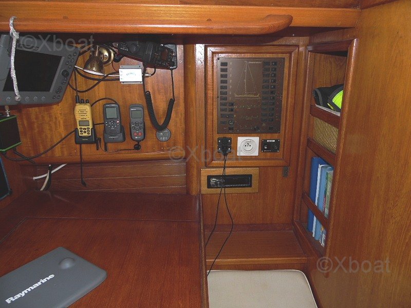 La electrónica está completa y funcional: central Raymarine con pantallas ST60 TRIDATA, GPS plotter en color Raymarine C80, piloto automático Raymarine, veleta-anemómetro, VHF fija NAVICO 4800, AIS emisor y receptor, VHF portátil, software de navegación Navionics. Este arsenal hace que el SUN LEGEND 41 esté listo para la navegación oceánica con medios modernos de control y seguridad.