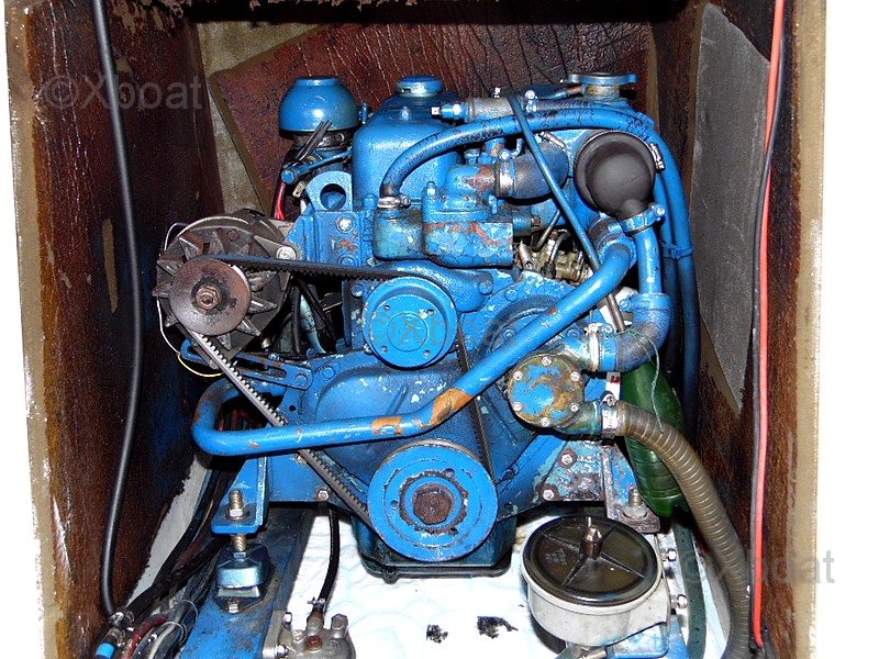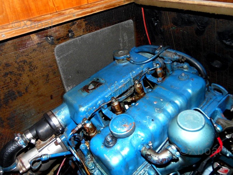 La motorización está asegurada por un Perkins de 36,8 kW (aproximadamente 50 cv), 3 108 horas en el cuentakilómetros, arrancando sin dificultad y funcionando correctamente. Motor mantenido por su propietario asistido por un mecánico profesional. En 2025, intercambiador limpiado, silentblocs reemplazados, línea de árbol nueva así como la brida y la junta hidrolube. Codo de escape en acero inoxidable, mantenimiento al día.