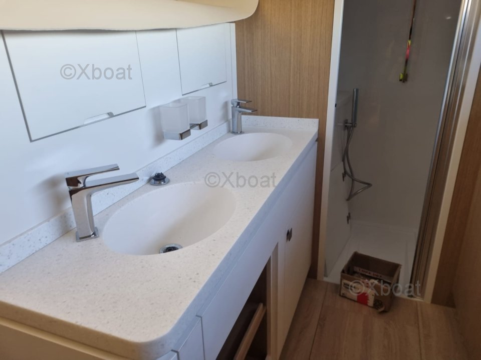 El diseño moderno de este Privilege Signature 510 con amplios cristales panorámicos aporta al salón y a la cocina abierta una gran visibilidad panorámica. La carpintería de roble y los materiales de alta gama añaden un toque de sofisticación al conjunto. Una distribución muy apreciada por su confort absoluto. Este PRIVILEGE SIGNATURE 510 ofrece una configuración óptima: una espaciosa cabina de proa central que abarca toda la anchura del catamarán, con pasillo privado, cuarto de baño exclusivo a estribor y un vestidor con tocador a babor. Dos cabinas de invitados situadas a popa, cada una equipada con un WC y una ducha separados para un confort óptimo. Rendimiento y seguridad en la navegación Diseñado para la gran navegación oceánica, este catamarán Privilege Signature a la venta combina estabilidad, seguridad y rendimiento. Su maniobrabilidad permite una navegación serena con una tripulación reducida, incluso en condiciones exigentes. Gracias a su cockpit protegido y ergonómico, la comunicación sigue siendo fluida con la tripulación y los invitados. Un equipamiento de alta gama Este PRIVILEGE SIGNATURE 510 se entrega listo para navegar, con una selección completa de equipamientos: Aire acondicionado, Grupo electrógeno, Desalinizador, Electrónica de última generación, Paneles solares, Annexe performante... Además, disfrute de 2 semanas con un patrón profesional, experto en catamaranes PRIVILEGE, así como de la asistencia en el astillero y de todas las garantías del fabricante. Este catamarán Privilege Signature a la venta es una oportunidad única para los amantes de la navegación en busca de un barco nuevo, inmediatamente disponible y perfectamente equipado para la gran navegación. Puede ser entregado con su bandera inglesa, está certificado MCA y puede ser financiado en leasing si es necesario. Visita virtual disponible bajo petición.