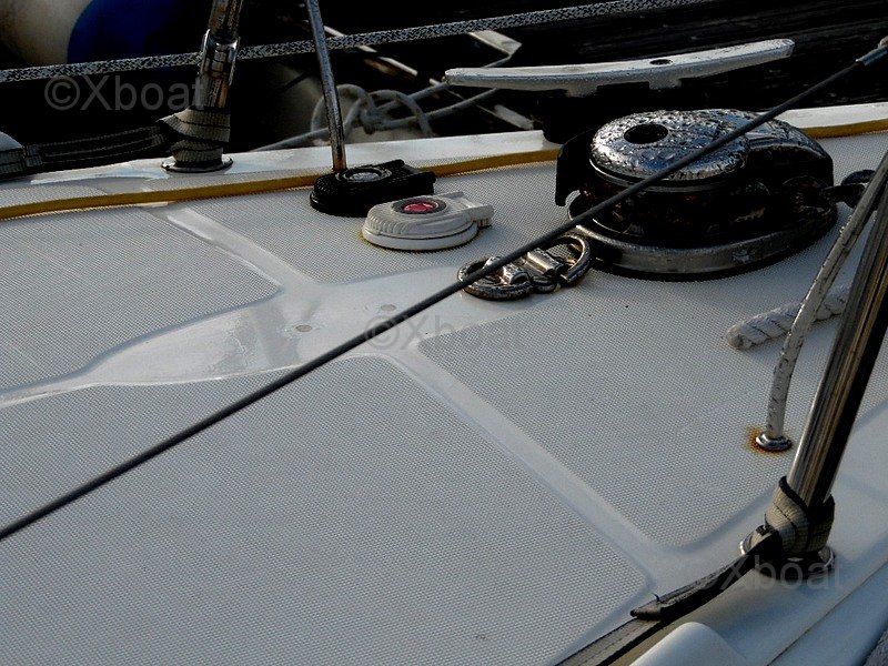 - Detalles de las velas : Vela mayor nueva pro radial, tri radial blanca de 31,60m², 3 rizos de 01/2025 - Génova en enrollador pro radial de 03/2024. 1 foque con rizos en estay desmontable de 16 m² - Vela mayor NORTH de dacron de 2010, 3 rizos, buen estado (vela de invierno). Génova de crucero NORTH de 2022, muy buen estado, radial en enrollador (vela de invierno) - Spinnaker medio NORTH de 2010 - Spinnaker pesado NORTH de 2010. Código 5 NORTH en emmagasinador KARVER de 2010 - Solent NORTH KELVAR con funda NORTH - Foque ORC latte NORTH mylar con funda NORTH - Foque con rizos en estay desmontable de 16 m². Enrollador de génova HARKEN MK4 - Lazy bag + lazy jack (05/2023) - Estay desmontable (06/2023) - Aparejo de spinnaker simétrico y asimétrico - Tangón de carbono y botalón - Cabriolet de descenso (01/2023) - Aparejo dormido DYFORM.