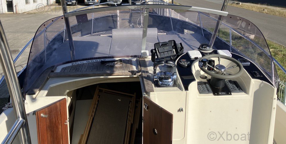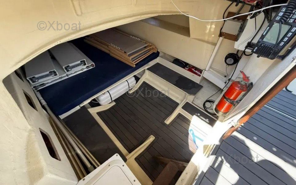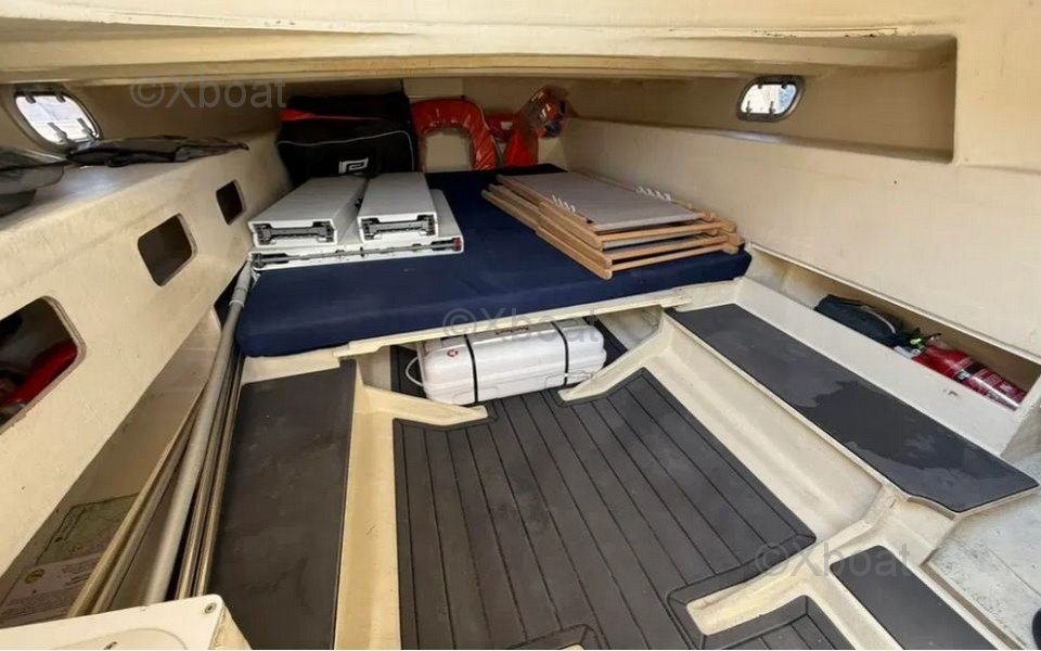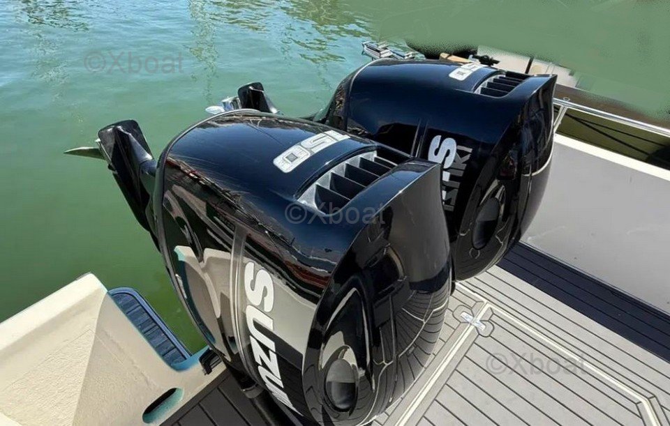 El Espadon 800 es un modelo particularmente interesante gracias a sus motoes 2019 que garantizan un rendimiento óptimo y una fiabilidad aumentada. Además, su reforma completa en 2019 incluye equipamientos de alta gama como el T-Top de inoxidable y el revestimiento de suelo SEA DECK, ofreciendo un confort superior y una durabilidad excepcional. Su poco calado permite navegar en zonas poco profundas, y su gran cabina con cama doble en proa es perfecta para escapadas prolongadas.