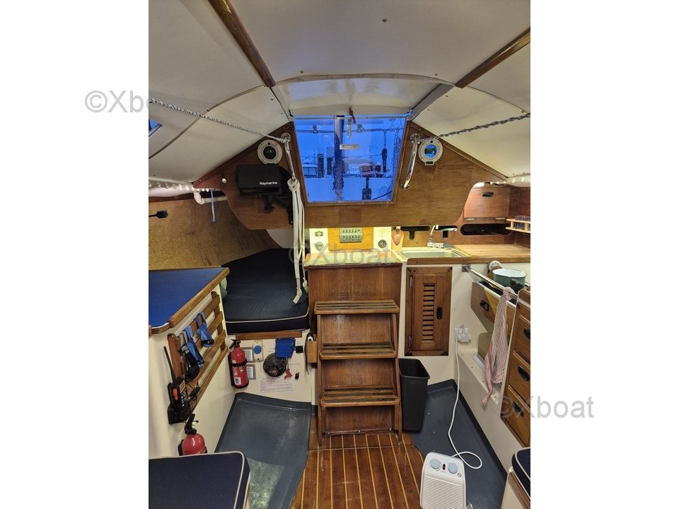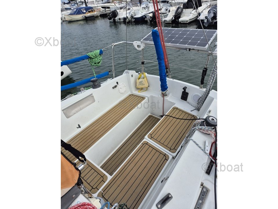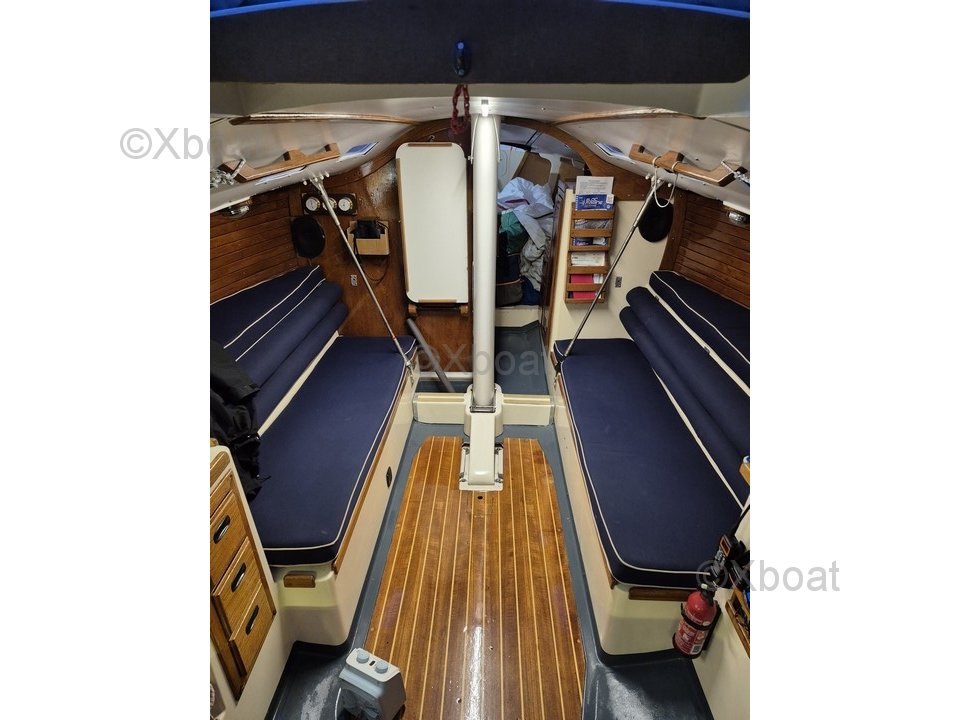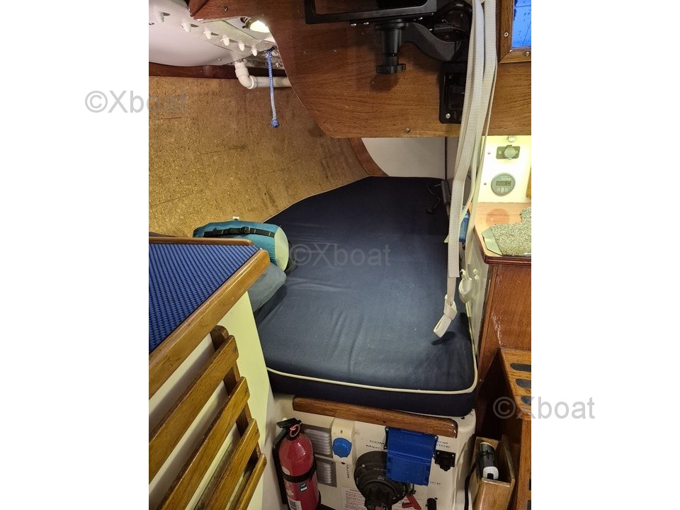 El confort a bordo está asegurado por una capota de descenso NV. Hay agua caliente bajo presión y una cocina WALLAS 85D. La cabina delantera tiene una cama doble, mientras que el salón ofrece 4 literas individuales con telas anti-rodadura. Una gran litera se encuentra bajo el cockpit, y los colchones de las literas son recientes. Los WC Jabsco fueron revisados en 2024.