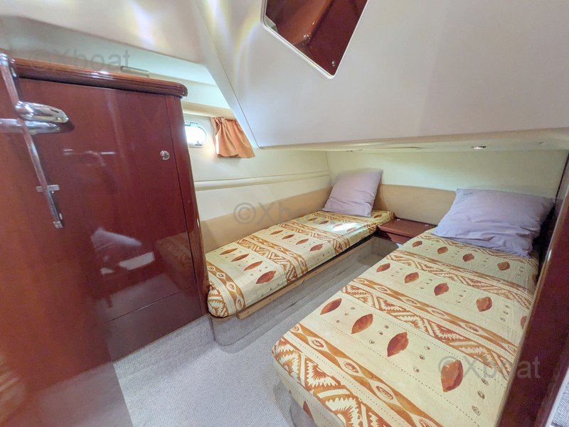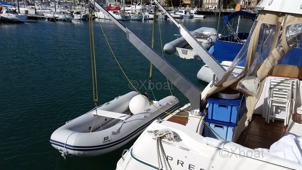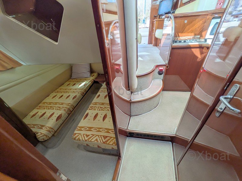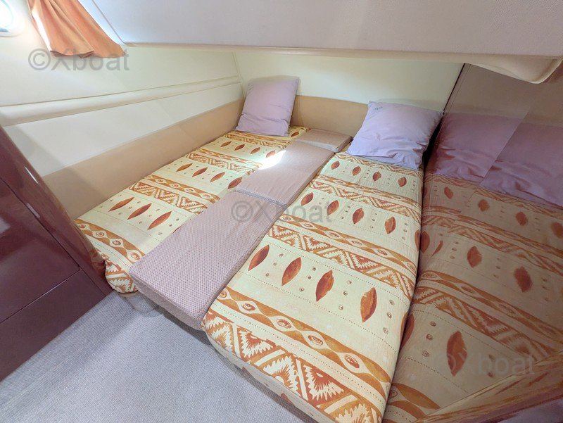 JEANNEAU Prestige 36 Fly – 2003 Versión sobreequipada Mantenimiento apasionado Listo para navegar PRESTIGE 36 FLY 2 cabinas Eslora total: 11.60 m Eslora de casco: 10.83 m Manga: 3.84 m Calado mínimo: 0.93 m Peso en vacío: 8.3 toneladas Capacidad de agua: 400 litros (2 x 200l) Capacidad de combustible diésel: 800 litros (2 x 400 l) Motorización 2 x 285 CV (eje de transmisión) Categoría C.E: B -8 personas SEGUNDO PROPIETARIO: Botado en 2003 y en manos de su propietario actual desde 2007, este Prestige 36 Fly ha recibido un seguimiento excepcional, riguroso y documentado. Verdadero barco de propietario apasionado, siempre ha sido mantenido sin compromisos, con facturas, libro de mantenimiento y documentación completa (Inventario y seguimiento de mantenimiento disponibles en la zona PDF arriba). Con sus 930 horas de motor (evolutivas) (2 x Volvo Penta KAMD 300A – 2 x 285 CV), muestra un uso razonable y perfectamente seguido. Las revisiones mayores se han realizado (intercambiadores, bombas, juntas SPI, refrigeración, ejes, anillos hidrolube…), garantizando fiabilidad y serenidad para las próximas temporadas. UN BARCO TÉCNICAMENTE FIABLE: • Antifouling COPPERCOAT (2021) después de arenado completo y tratamiento epóxico (no requiere antifouling durante 10 años con este sistema) • Revisión exhaustiva de motores y periféricos 2022–2025 • Reemplazo de eje de hélice de babor + controles de alineación • Flaps automáticos LENCO (2024 - permite estabilización automática en navegación y ahorro de combustible) • Propulsor delantero y trasero (maniobras facilitadas) • Transformador de aislamiento 220V (protección de ánodos) • Refuerzo completo de instalaciones eléctricas 12V & 220V La carena, las obras vivas y la instalación eléctrica han sido objeto de mejoras constantes. ELECTRÓNICA DE ALTO RENDIMIENTO Y MODERNA EQUIPAMIENTO RARO EN UNA UNIDAD DE ESTA GENERACIÓN: • Doble pantalla multifunción RAYMARINE Axiom 9 (Timonería + Fly) • Radar Quantum Q24C • Piloto automático EV1 + comandos en los dos puestos • Sonda 3D transversal de bronce • Red NMEA2000 completa con interfaces de motores • AIS clase B + VHF AIS • Cámaras de motor, cockpit, timonería y retroceso • PC de navegación táctil 17’’ con SSD Un nivel de integración electrónica muy superior a la media del mercado. CONFORT Y AUTONOMÍA: • 2 cabinas + salón luminoso • Cocina equipada (nevera 150L, placa de gas ENO, microondas) • Calentador WEBASTO Air Top • WC eléctricos agua dulce/agua de mar • 2 paneles solares móviles (2023) • Inversor de onda pura 2 Kva • Bote neumático semi-rígido 3,10 m + motor 6 CV • Asientos completos, baños de sol, toldos recientes, fly protegido (2023) SEGURIDAD Y EQUIPAMIENTO COMPLETO AL DÍA: Lancha polivalente ideal para crucero costero y semi-alto Balsa salvavidas FOR WATER - 4W - plazas alto mar <24h (validez en junio 2027) Gran bote neumático semi-rígido de 3.10 m con motor fuera de borda de 6cv Balcines eléctricos Chalecos… Puede consultar el INVENTARIO COMPLETO del propietario en el PDF adjunto (arriba) Las fotos son recientes, del 25 de febrero de 2026, para el desinvierno. El barco está listo para navegar inmediatamente para la temporada 2026 CONTACTO: Información adicional, fotos, videos, dejando sus datos al corredor referente Erwan ALLEE al 06 89 637 537 (+33 789 637 537) – erwan@xboat.fr El barco está basado en Francia, Bretaña Norte, sector Saint-Brieuc / Paimpol El barco se vende con todos sus equipos, que son numerosos. Este barco tiene equipamientos eléctricos y electrónicos avanzados y se dirige más bien a un "conocedor apasionado" que ama la tecnología. El propietario ofrecerá al comprador una verdadera toma de posesión con toda la información, explicaciones, recomendaciones y consejos para el uso y el mantenimiento en toda serenidad. (tras la venta).