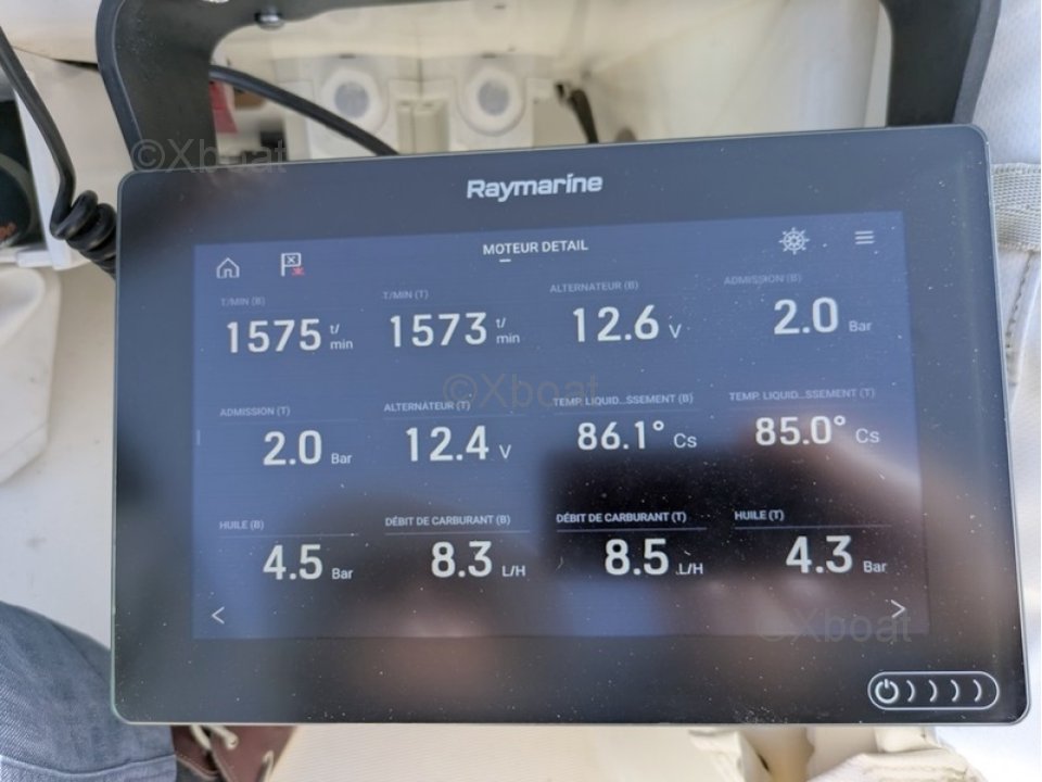 - Comentarios del Dueno : Interruptores de corte de los compresores volumétricos - Comandos electrónicos - Digitalización de datos del motor EDC1 a NMEA2000 para información en las pantallas multifunción - 2 Horómetros digitales en la timonería (2020) - 2 juegos de correas del motor (3 correas por kit) - 2 kits de turbina de agua de mar + herramientas de extracción - Capacidad de combustible diésel: 2 x 400 litros (tanques de polipropileno - tratamiento antibacteriano regular) - Consumo a velocidad de crucero de 7 nudos, es decir, aproximadamente 12l/15l por hora en los 2 motores - Consumo más allá de 20 nudos, es decir, 100l/hora > MANTENIMIENTO Y CUIDADO > Seguimiento riguroso y documentado > Haga clic en las pestañas PDF para descargar los informes de mantenimiento y el diario de a bordo
