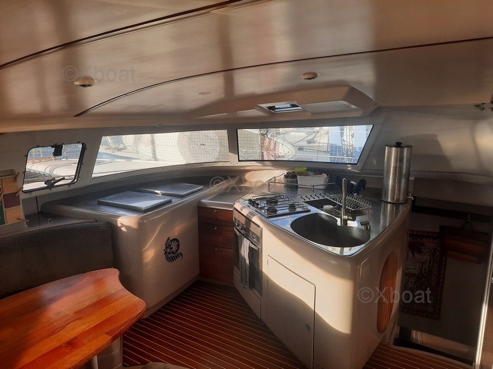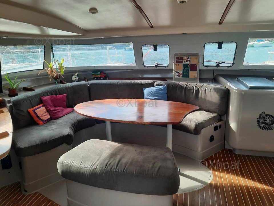 Vendo mi **Fountaine Pajot Venezia 42**, un catamarán de segunda mano listo para navegar] [Vendo mi catamarán **Venezia 42**, una joya naval firmada por **Fountaine Pajot**, un astillero francés de prestigio reconocido por su excelencia en construcción naval, fundado en **1976** en Aigrefeuille (Francia). Este modelo emblemático, diseñado para **grandes travesías** y viajes prolongados, combina comodidad, rendimiento y robustez.] [A sus **42 pies (12,60 metros) de eslora** y **6,95 metros de manga**, este catamarán ofrece un espacio generoso. Su **calado de 1,20 metros** garantiza una navegación estable en aguas poco profundas, ideal para explorar lagunas como las de **Nueva Caledonia**. Equipado con una versión **personalizada**, incluye un **mástil alargado** y **herrajes de alta gama Harken**, fusionando elegancia y robustez.] [**Un catamarán autónomo y optimizado para largas travesías**] [Directo al grano: este **Fountaine Pajot Venezia 42** está **listo para zarpar de inmediato**, con matrícula neocaledonia en el **puerto deportivo de Nouméa**. Su **desalinizador de alto rendimiento (60 litros/hora)**, **7 baterías de servicio Optima (525 Ah)** y **2 paneles solares de 880W** cubren sin preocupaciones las necesidades de agua dulce y electricidad, incluso en travesías prolongadas. Su **generador revisado**, junto a un **cargador/convertidor Victron 1600VA**, aseguran una autonomía energética total.] [Para las comidas a bordo, dispongo de una **cocina de acero inoxidable a medida**, equipada con una **cocina de 4 quemadores + horno Eno Gaz** y un **frigorífico-congelador de 12V**. El confort sanitario incluye un **desalinizador con mantenimiento regular** (membrana cambiada en 2021), **WC manuales Plastimo** y un **sistema de agua caliente/fría a presión**. Como extras, hay un **barbacoa de acero inoxidable a gas Eno** y una **TV LED 2022** para el relax.] [**Un interior de lujo y funcionalidad**] [El interior de este **Venezia 42** está diseñado para equilibrar **confort y practicidad**. Ofrece: - **3 cabinas dobles**: espacios generosos para un descanso reparador. - **1 cabina convertible doble/vestidor**: adaptable a distintas necesidades. - **2 baños completos**: con ducha y WC para máxima comodidad. - **1 vestidor adicional** integrado en el casco de estribor, convertido en espacio privado. - **2 literas individuales**: para la tripulación o invitados.] [La **cocina de acero inoxidable a medida**, que combina estética y funcionalidad, es un verdadero activo. La iluminación LED y los enchufes de 12V/220V repartidos por todo el barco completan este ambiente cuidados y moderno.] [**Motorización fiable y aparejo renovado**] [En cuanto a propulsión, opté por la fiabilidad con dos **motores Yanmar de 2x28 CV**, **completamente renovados en 2010** (solo 1.600 horas de navegación). Los **sail drives SD20**, reemplazados en 2014, garantizan una transmisión óptima. Con sus **370 litros de combustible**, este catamarán puede surcar largas distancias con total tranquilidad.] [El **aparejo, completamente renovado en 2023**, incorpora lo último en tecnología: - **Vela mayor con 3 rizos One Sail (2023) y lazy bag nuevo**: simplicidad y rendimiento. - **Genoa One Sail (2023) con enrollador**: maniobra fácil y menor mantenimiento. - **Spinnaker simétrico**: para navegaciones de popa o con viento fuerte. - **Gennaker revisado en 2024**: un extra para navegaciones portantes. - **Winches eléctricos** que facilitan las maniobras, incluso en solitario.] [**Tecnología a bordo completa y moderna**] [Para una navegación precisa y segura, este **Fountaine Pajot Venezia 42** cuenta con: - **Piloto automático Raymarine Evolution EV200 (2019)**: para navegar con total tranquilidad. - **Compás de rumbo y anemómetro**: herramientas clave para la toma de decisiones. - **Sonda ST40** y **GPS Navionics en tablet**: un dúo para evitar riesgos y trazar rutas. - **Radio VHF Navicom** y **equipo de música con lector de CD y 4 altavoces**: comunicación y entretenimiento.] [**Equipamiento exterior: máximo confort y seguridad**] [La cubierta es un espacio de vida diseñado para mayor comodidad: - **Bimini rígido con toldos y parabrisas (2023)**: sombra y protección. - **Trampolín nuevo (2023)**: para tomar el sol con seguridad. - **Barbacoa de acero inoxidable a gas Eno**: comidas conviviales en alta mar.] [En cuanto a seguridad y fondeo: - **Guinche eléctrico**: para izar el ancla sin esfuerzo. - **Fondeo principal**: 70 metros de cadena de 10 mm y ancla Spade de 25 kg. - **Fondeo secundario**: ancla de 25 kg con 30 metros de cadena. - **Balsa salvavidas de 10 personas** (a revisar).] [Para mantenerme conectado en alta mar, incluye **Starlink**, y una **antena de TV Glomex** para momentos de relajación. Además, dispongo de una **lancha auxiliar HIGHFIELD de 3,10 m con motor fuera de borda Tohatsu de 9,8 CV (2021)** para acercarse a tierra.] [**¿Por qué el Fountaine Pajot Venezia 42 es un modelo atractivo?**] [Este **Venezia 42** destaca por sus múltiples ventajas: - **Autonomía total**: gracias a su desalinizador, paneles solares, aerogenerador y sistema energético optimizado. Ideal para **grandes travesías** o estancias prolongadas. - **Aparejo reciente y de alto rendimiento**: completamente renovado entre 2023-2024 con velas modernas y mayor facilidad de manejo. - **Interior amplio y personalizable**: 3 cabinas dobles, vestidor integrado, cocina de acero inoxidable de gama alta… Perfecto para tripulaciones familiares. - **Navegación segura y confiable**: con piloto automático reciente, electrónica completa y fondeo robusto. - **Motorización económica y renovada**: los Yanmar garantizan bajo consumo y larga vida útil. - **Acceso a un amarre en el puerto deportivo de Nouméa**: ideal para quienes desean zarpar sin preocuparse por encontrar un lugar. - **Enfoque en la comodidad**: agua caliente/fría a presión, frigorífico-congelador de 12V y un d