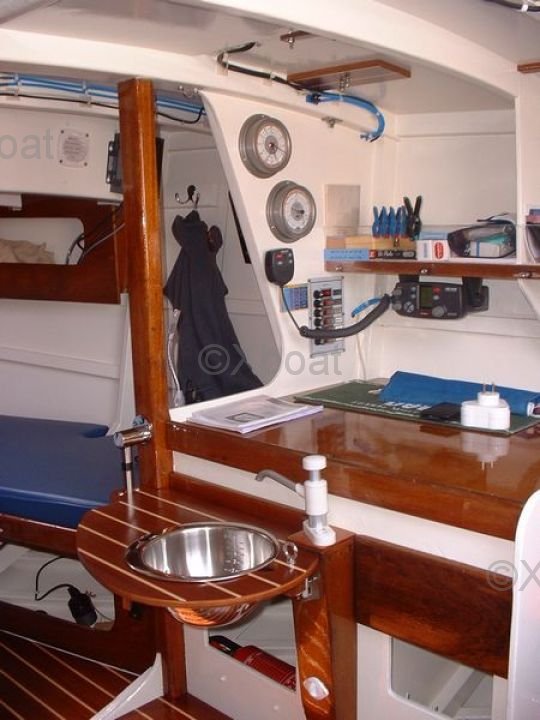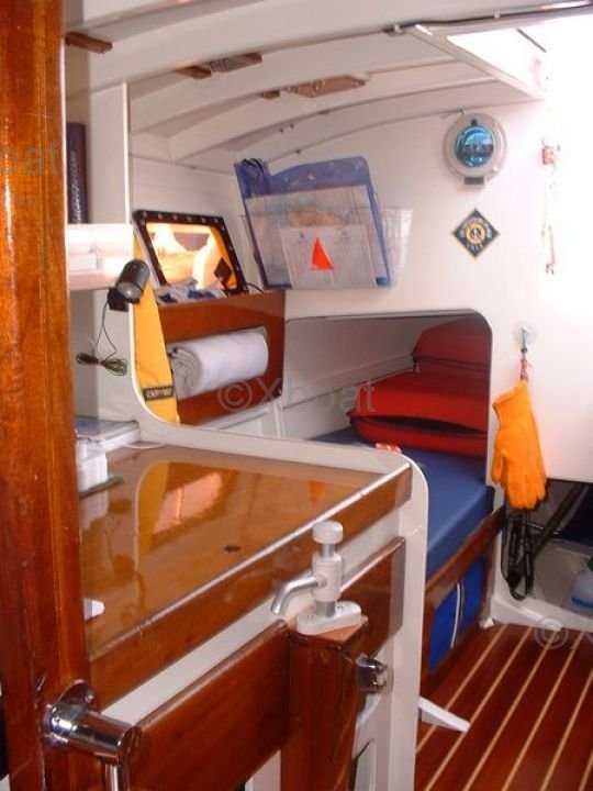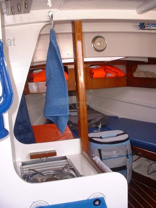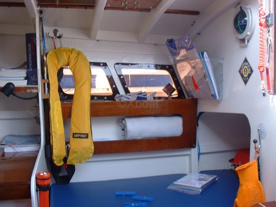 En el interior, el Muscadet ofrece un espacio de vida cómodo con una cocina equipada, un baño con ducha y camarotes espaciosos. Los acabados están cuidadosamente realizados y los materiales utilizados garantizan una buena aislamiento térmico y acústico.