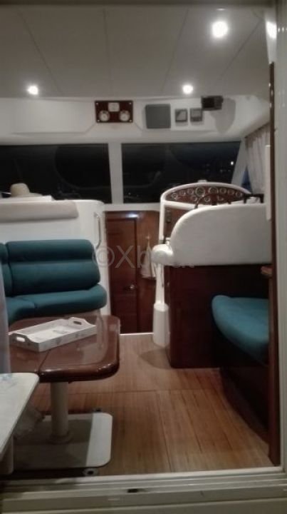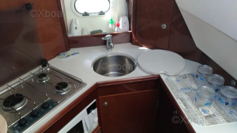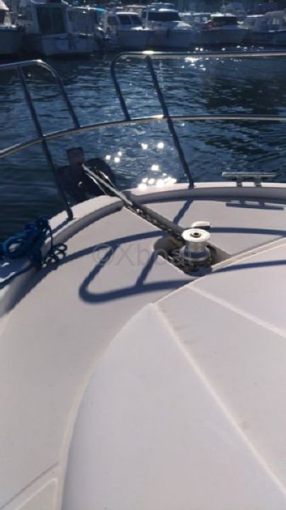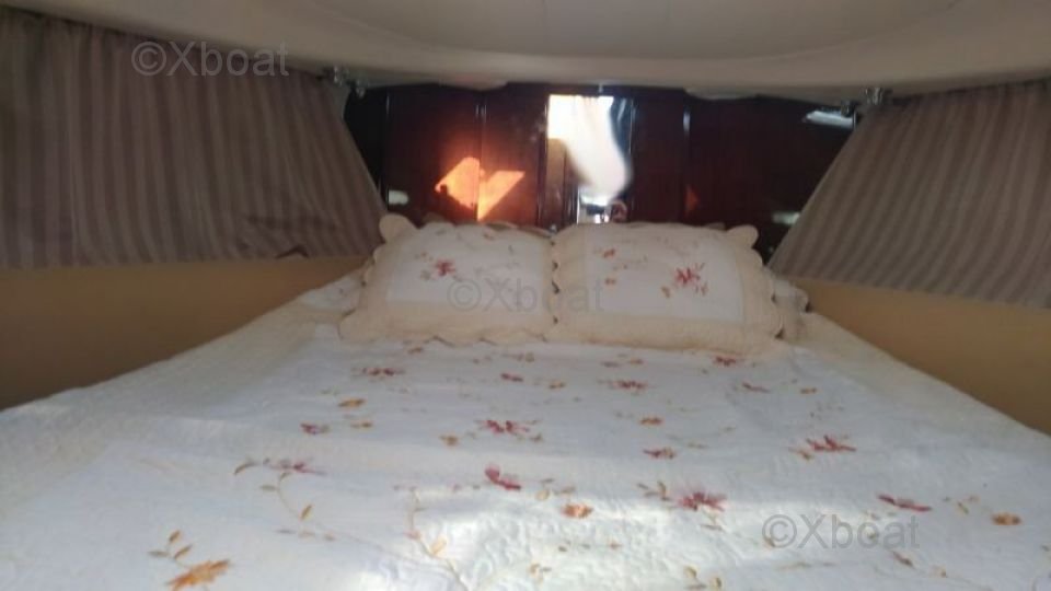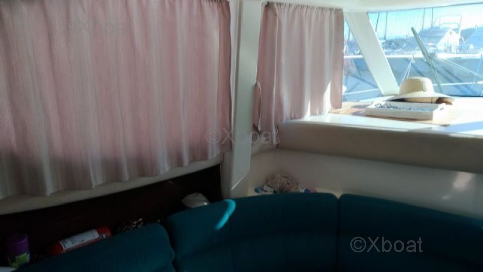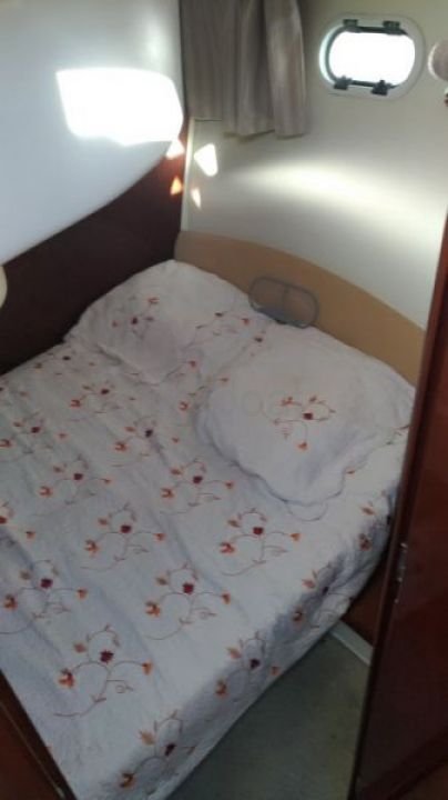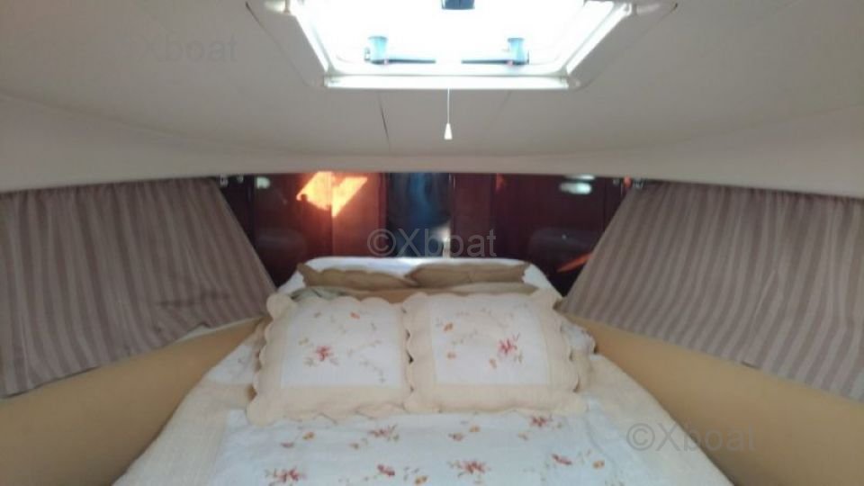 Distribución interior: El barco tiene dos cabinas, ofreciendo un espacio de vida cómodo para hasta 4 personas. La cabina principal es espaciosa y bien iluminada, con acabados de alta calidad. La cocina está bien equipada con un fregadero, un refrigerador y una encimera práctica.