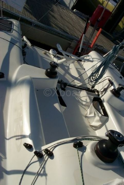 Diseño y Construcción: El JPK 960 fue diseñado por la oficina de diseño JPK, conocida por sus innovaciones y actuaciones en regatas. El casco está hecho de sandwich de poliéster con refuerzos de carbono, ofreciendo una excelente rigidez y una ligereza óptima. La cubierta también está hecha de sandwich de poliéster, con refuerzos de carbono para una mejor resistencia y reducción de peso.