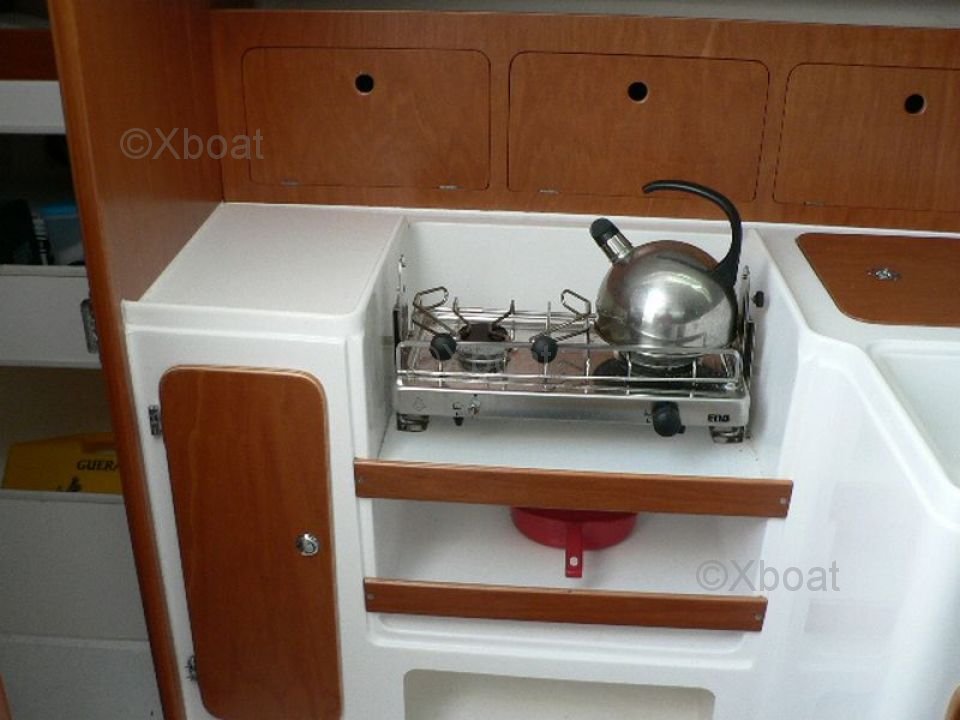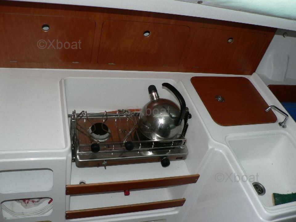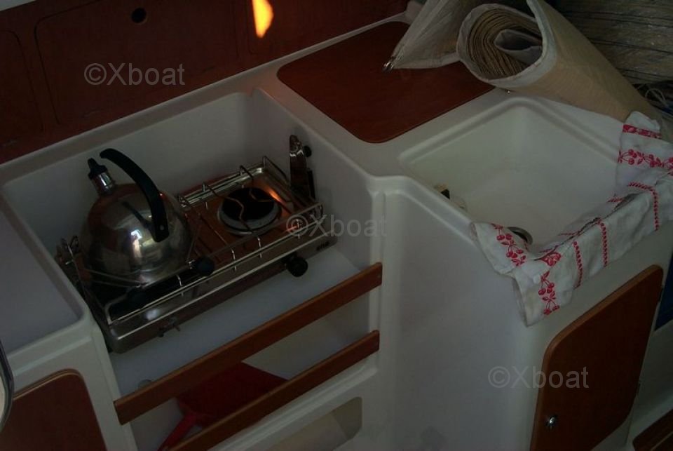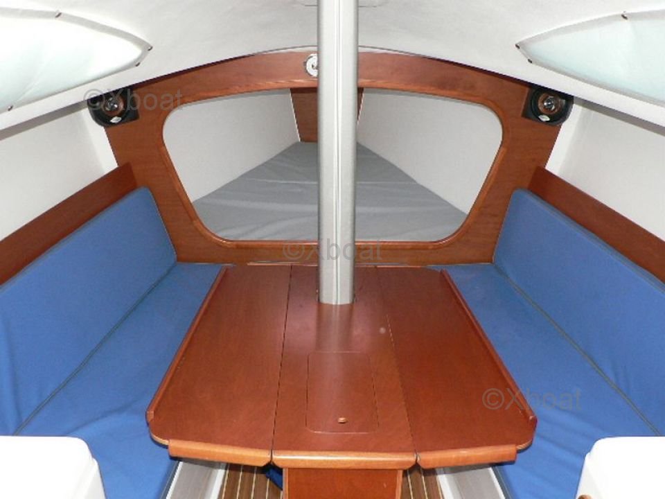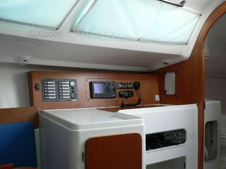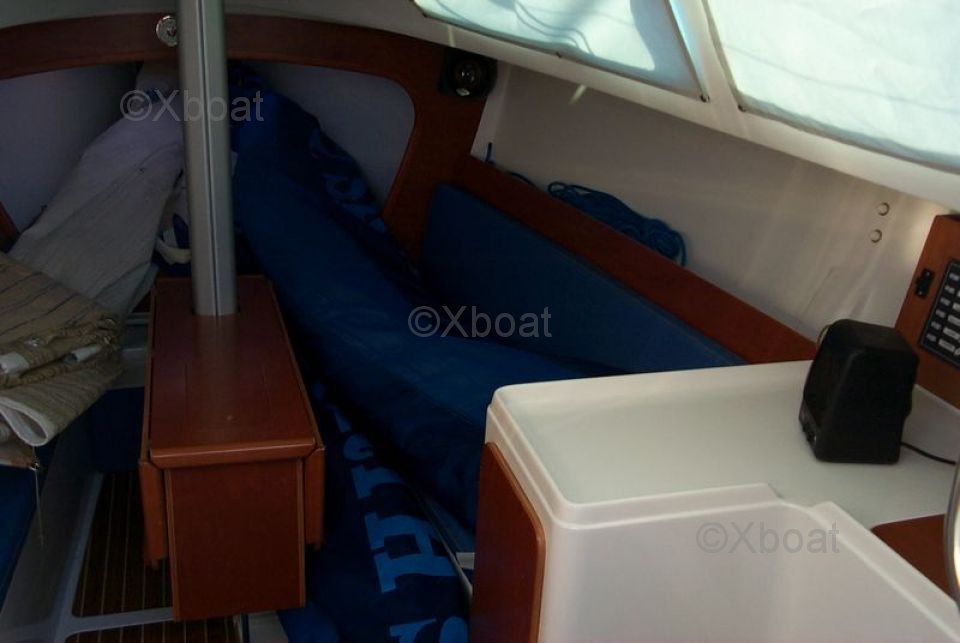Interior: El interior del JPK 960 es espacioso y funcional, con acabados de alta calidad. Puede alojar hasta 6 personas en un crucero, con camarotes cómodos y un espacio de vida bien equipado. La cocina está equipada con todo el equipo necesario para navegaciones prolongadas.