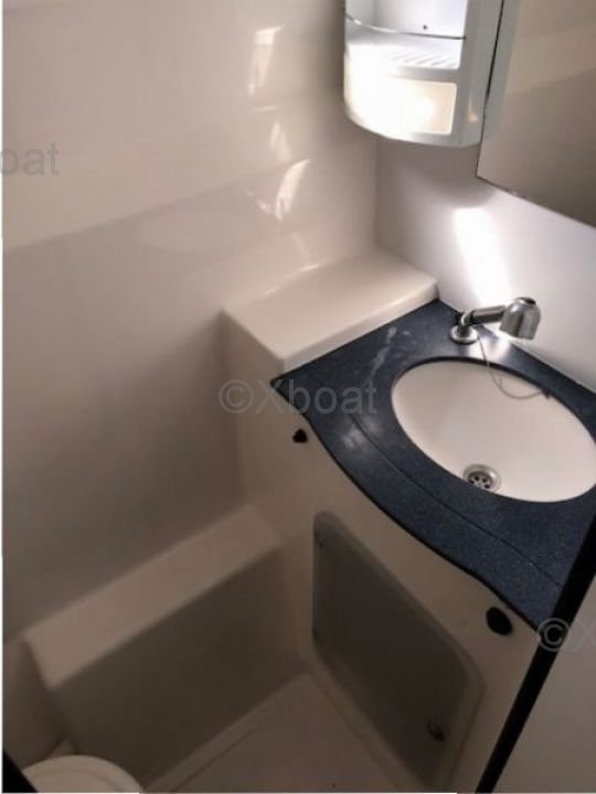 Capacidad: Este catamarán puede alojar hasta 8 personas en un crucero, con 4 cabinas dobles y 4 baños, asegurando el confort óptimo para viajes prolongados.