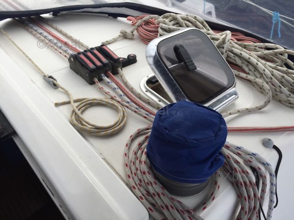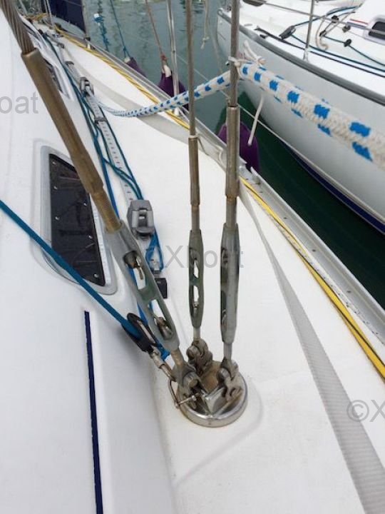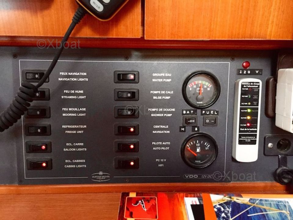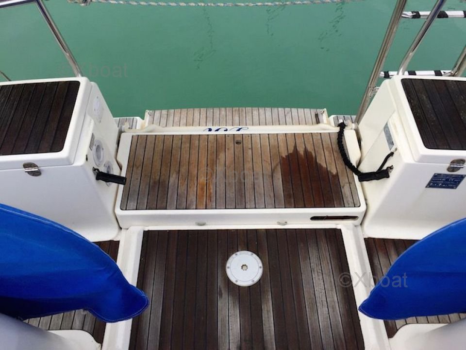 El Dufour 385 Grand Large está equipado con un interior espacioso y bien diseñado, con acabados de alta calidad. La distribución de las cabinas y los espacios de vida ofrece el máximo confort para viajes largos. El casco de fibra de vidrio y la cubierta de teca añaden durabilidad y estética a la embarcación.