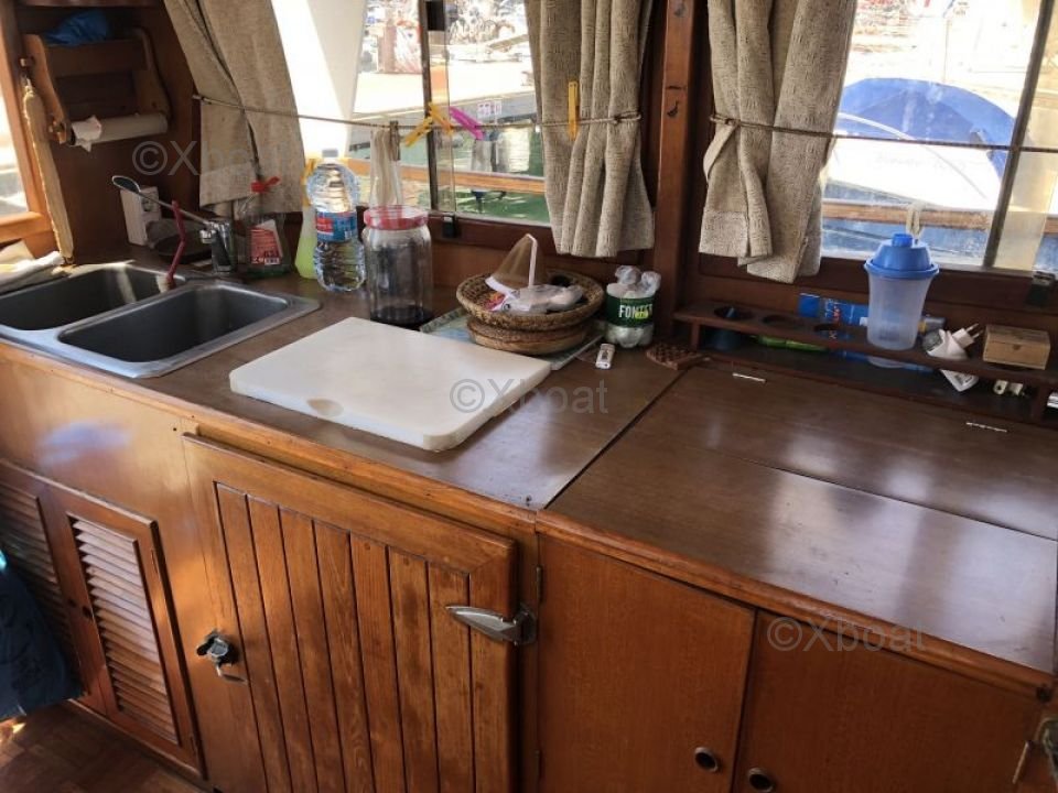 Uso: Este trawler es perfecto para cruceros costeros y travesías de larga distancia. Ofrece suficiente espacio para dos personas, pero puede alojar hasta cuatro personas para salidas más cortas.