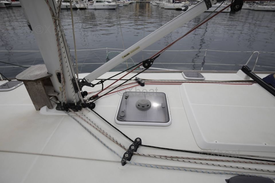 El Sun Odyssey 42i está equipado con numerosos dispositivos de seguridad, como un sistema de enrollado para la vela de proa, un enrollador de mayor y un piloto automático. También es posible añadir equipo adicional como un radar, GPS y una radio VHF para una navegación más segura y cómoda.
